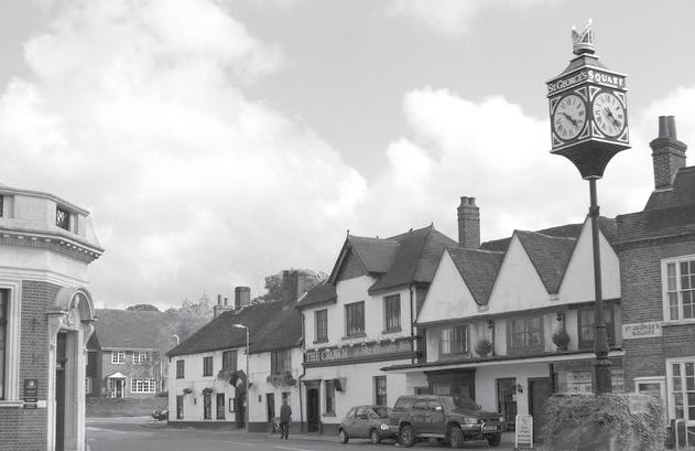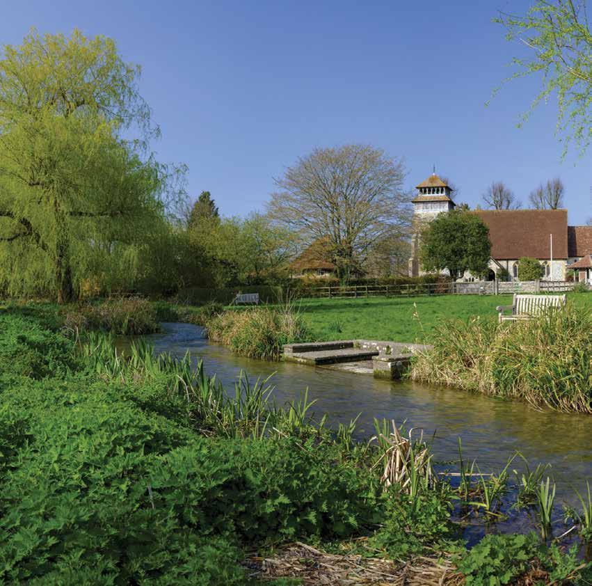 Crawley is a charming period village nestled in chalk downland, featuring thatched cottages, a C14 church, and a village pond.