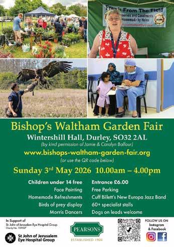 Meon Valley Bowling Club welcomes everyone to its open day. Try it for FREE, visit our garden and start bowling. Our qualified coaching team will be available with details of our 2026 beginners course. Based at Priory Park, Bishop’s Waltham. It’s at the top of Elizabeth Way, off Victoria Road, Bishop’s Waltham, SO32 1Sq. Why not try a new activity? To book your place email:pduckmanton8@ gmail.com or call: 07734 320418. Visit www.meonvalleybowlingclub. chessck.co.uk for further information in the section marked ‘open day’.