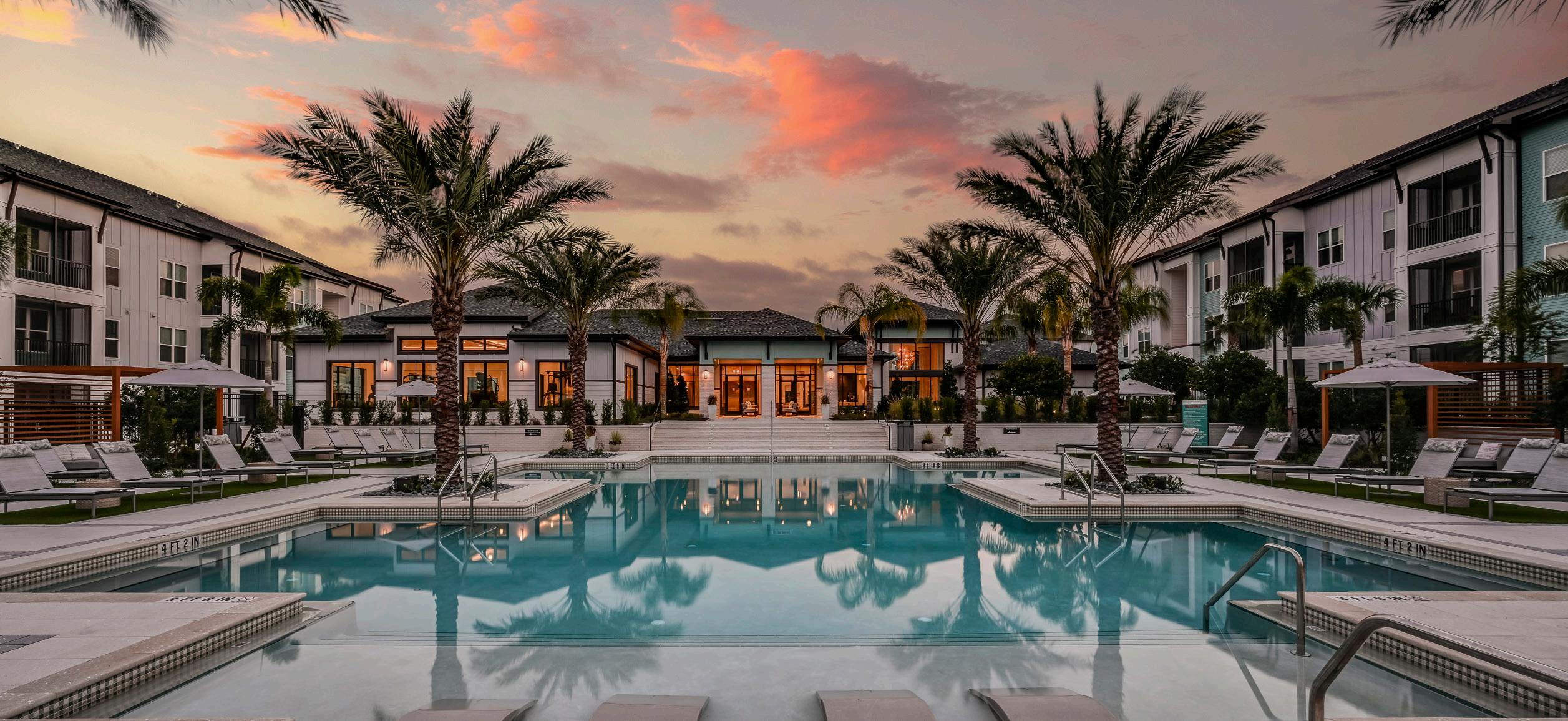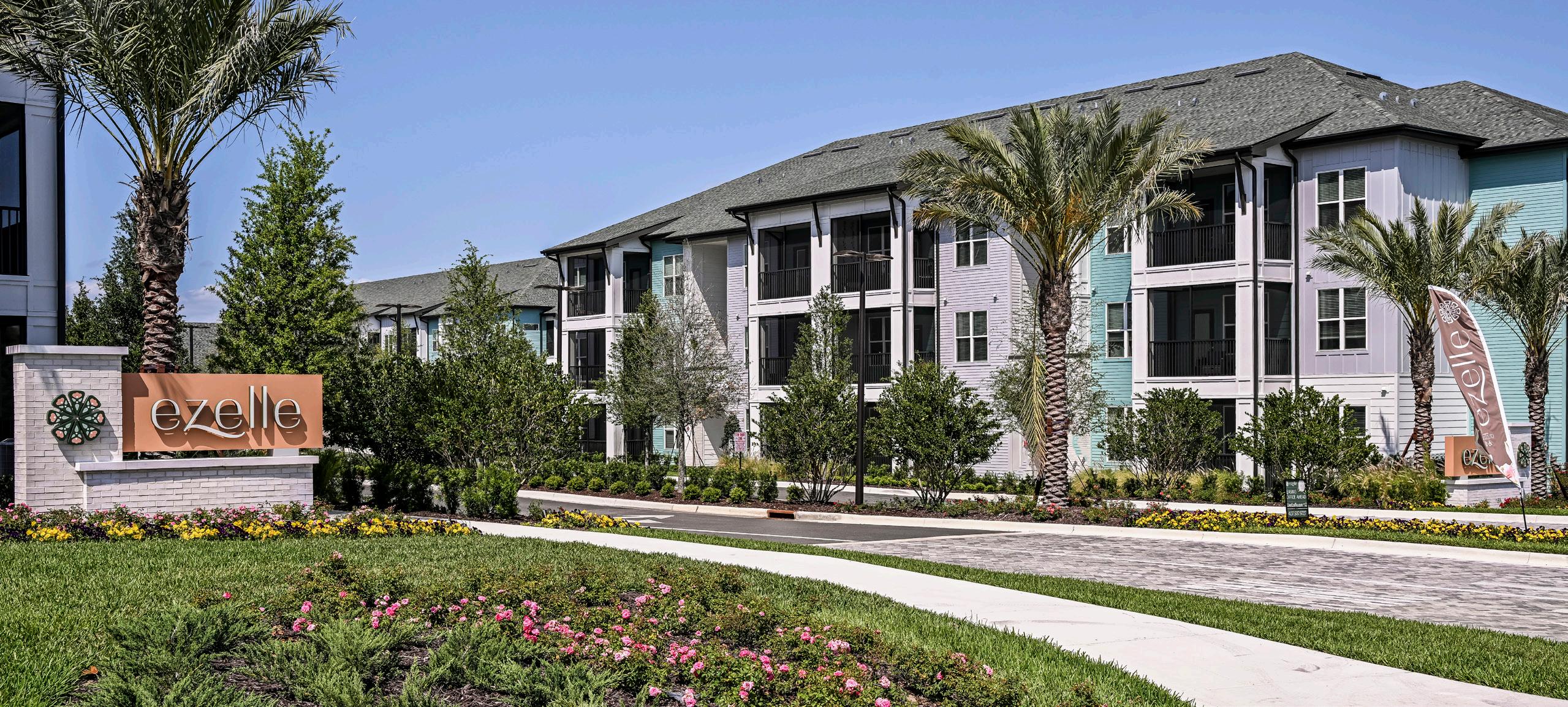 Located in nature-loving Kissimmee, a city south west of Orlando, Florida, in Osceola County, Ezelle is a luxury apartment community that feels more like a resort. Residents can enjoy easy access to the world-famous theme parks and entertainment, convenient access to major highways, and a host of on-site community amenities indoors and out. The development offers 168 spacious units as 1, 2, and 3 bedroom garden-style apartments with detached garages available as well as a dedicated resident lounge, kitchenette, co-working space with private rooms, adjoining fitness center and group fitness room, pet spa, outdoor walking paths, firepit, outdoor grills, seating, and games