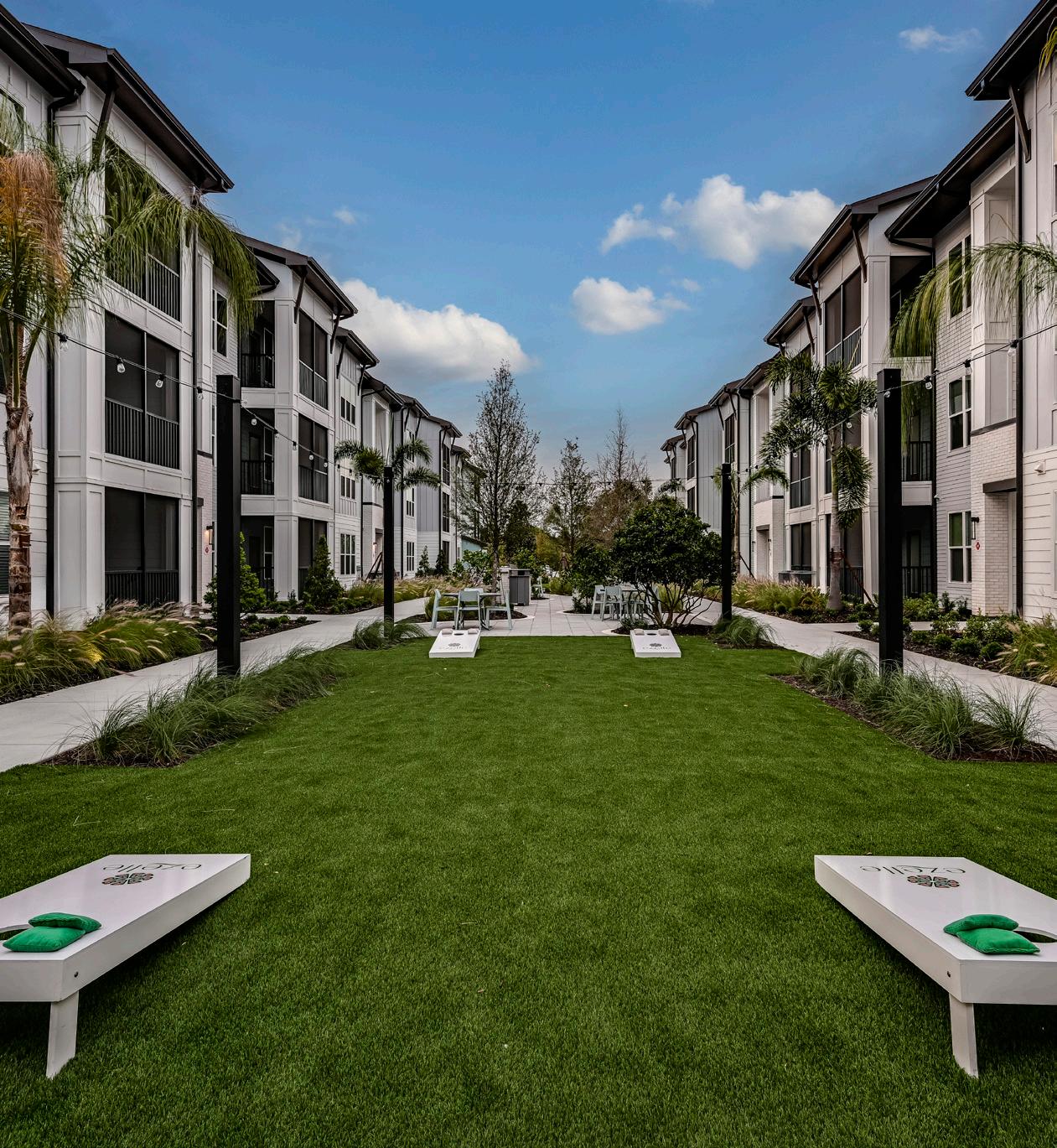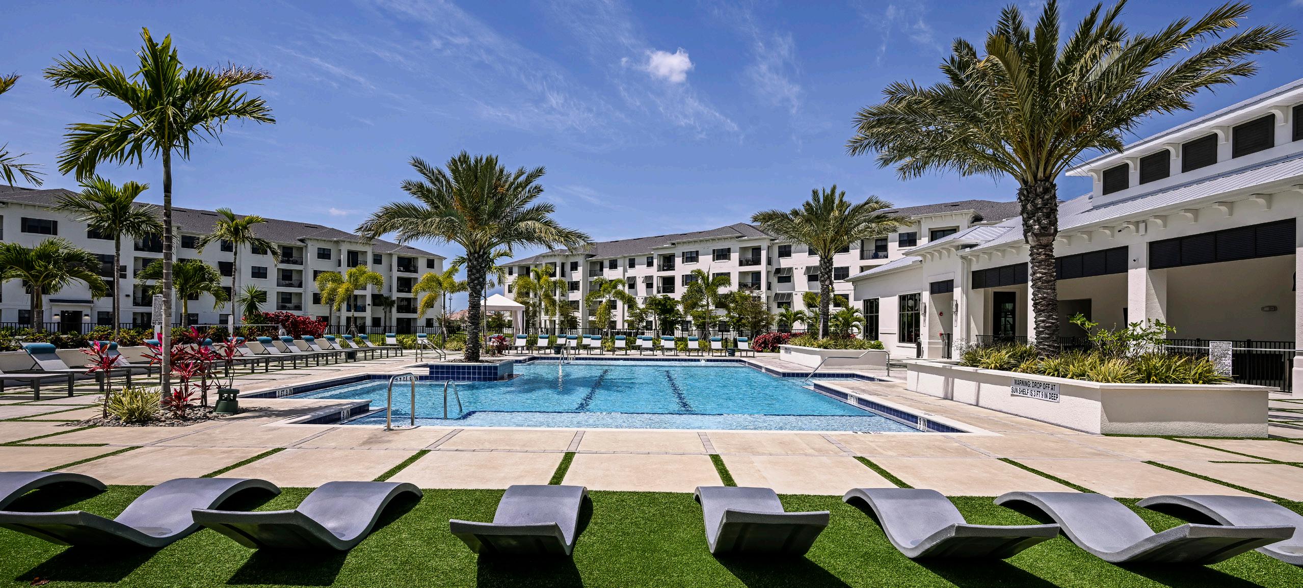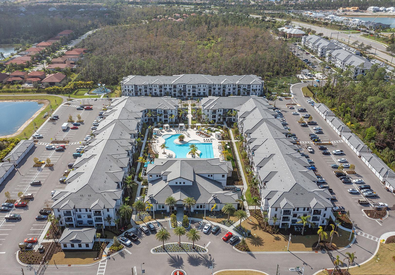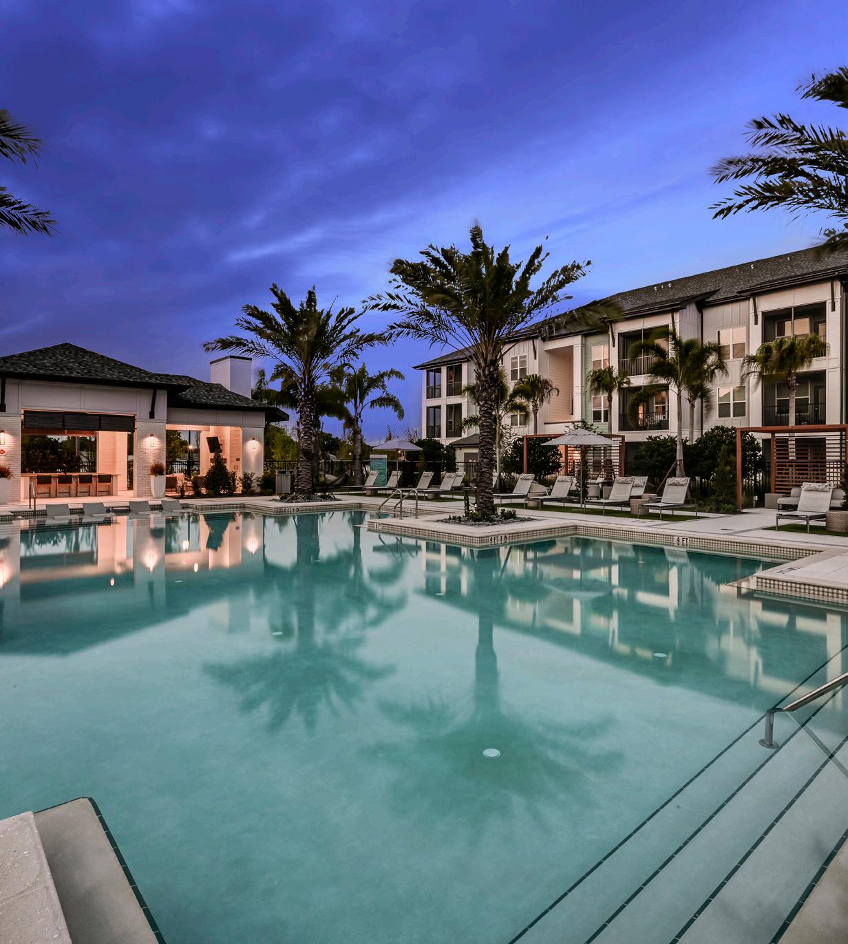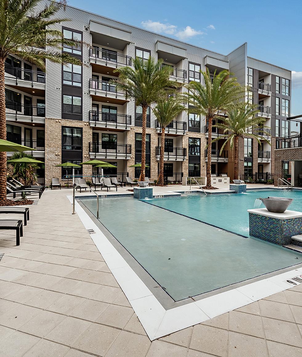 Nestled on the Gulf of Mexico in Southwest Florida, Naples is a destination city known for its sunny beaches, bougie boutiques, sophisticated dining, and world-class art and culture. In the heart of Naples sits Magnolia Square, a Mediterranean-esque marketrate community boasting 290 high-density luxury apartments, contemporary two-story clubhouse interior, and a host of resident amenities including a lap pool and outdoor hot tub with private cabanas and towel valet, massage room and spa, coffee lounge, conference room, fitness center, professional gourmet demonstration kitchen, indoor/ outdoor lounge with central courtyard with grills, pizza oven, and covered seating, indoor pet grooming, sauna/steam rooms, billiard and game rooms, indoor golf simulator, art gallery, waterfront off-leash dog park, parking garage, private garages, and more.