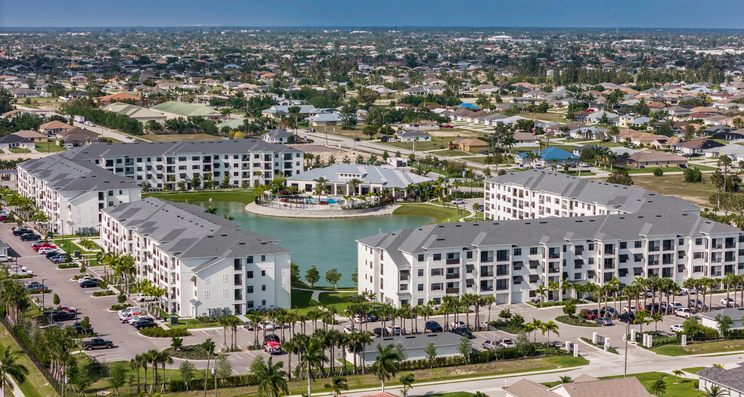 Located in sunny Cape Coral, Florida, Aspire luxury apartments is a market-rate gardenstyle community with an upscale aesthetic. The property boasts 319 spacious 1, 2, and 3-bedroom apartment homes with attached and detached garages, and a well-appointed community clubhouse that sits on an beautiful three-acre lake. Impressive indoor and outdoor amenities include pet spa, car care station, resort-style pool with lap section, sun deck with cabanas, fitness center, aerobic studio, 2,500 sf open air entertainment pavilion, cornhole areas, two oversized fire pits, bocce, basketball, and pickle ball courts, outdoor grills throughout the property, outdoor kitchen and bar, 1/3 mile lakeside walking path, large and small dog parks.