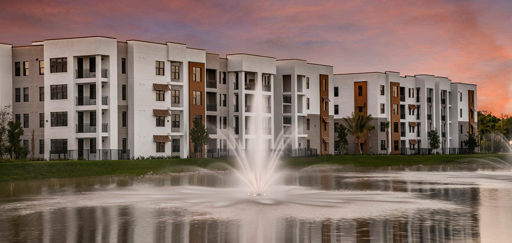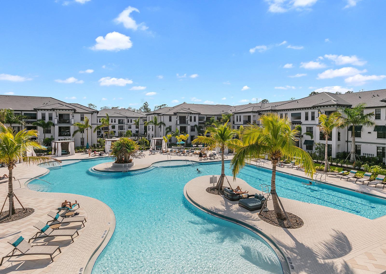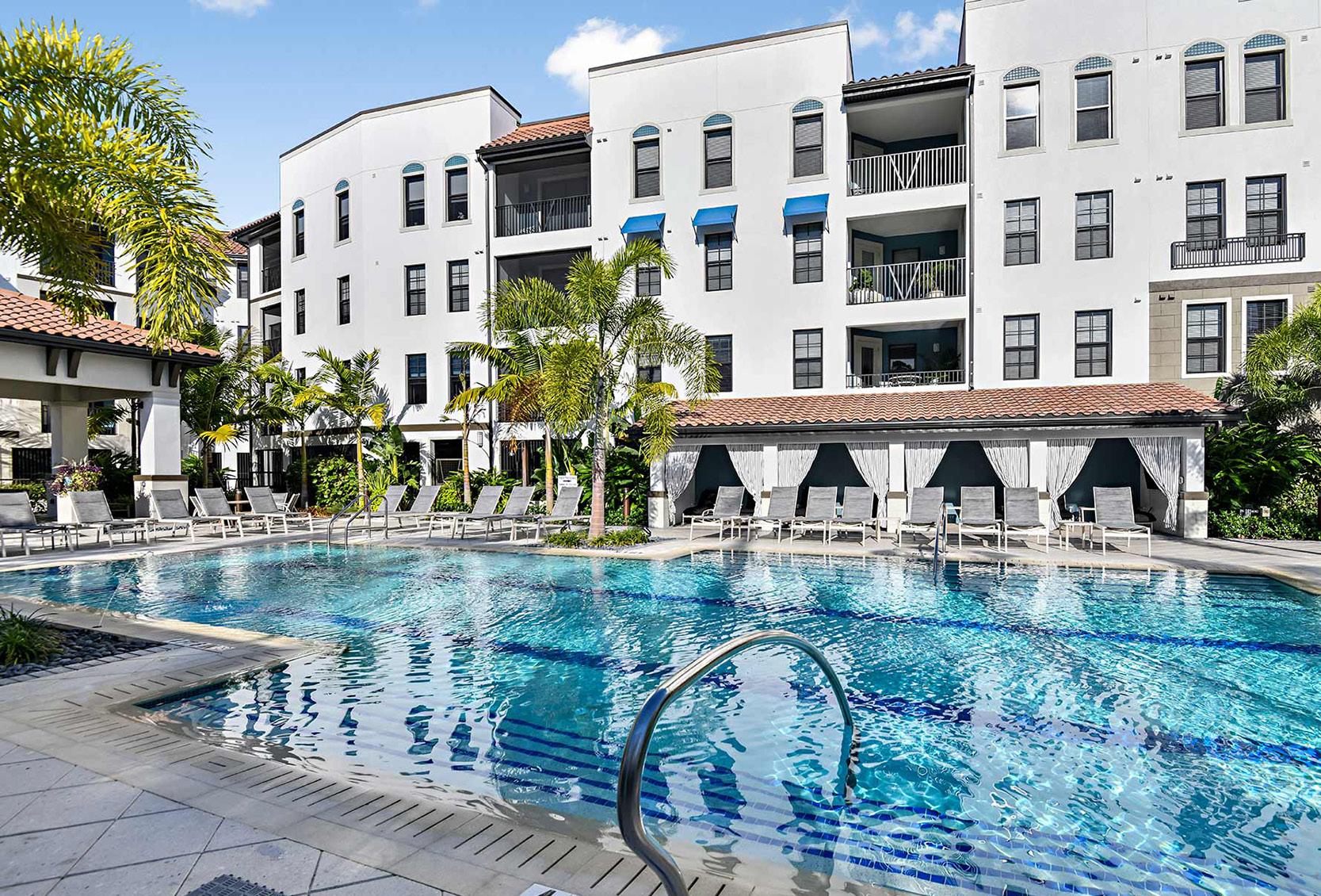 A modern oasis in North Naples with neutral color and warm wood veneers, Mark Lane apartments offer residents access to the highend Naples lifestyle with sun-kissed beaches, golf courses, luxe shopping, dining, and art and culture. This 286-unit garden-style property is situated within five, four-story buildings and a two-story open pool cabana at the clubhouse. Community amenities include an entertainment room, billiards station, fitness center with Life Fitness equipment, co-working corner, resort-style heated pool, demonstration kitchen, lake views, three outdoor kitchen lounges, private garages, open-air pet spa and pet park, and more.