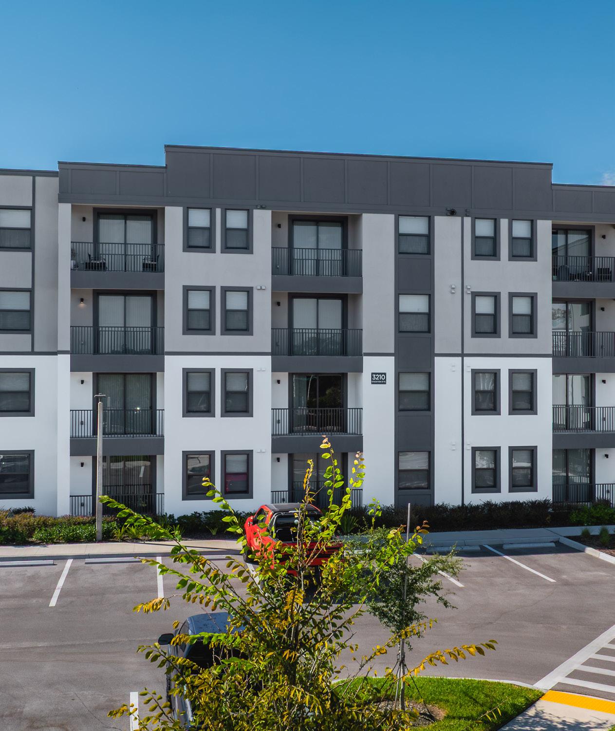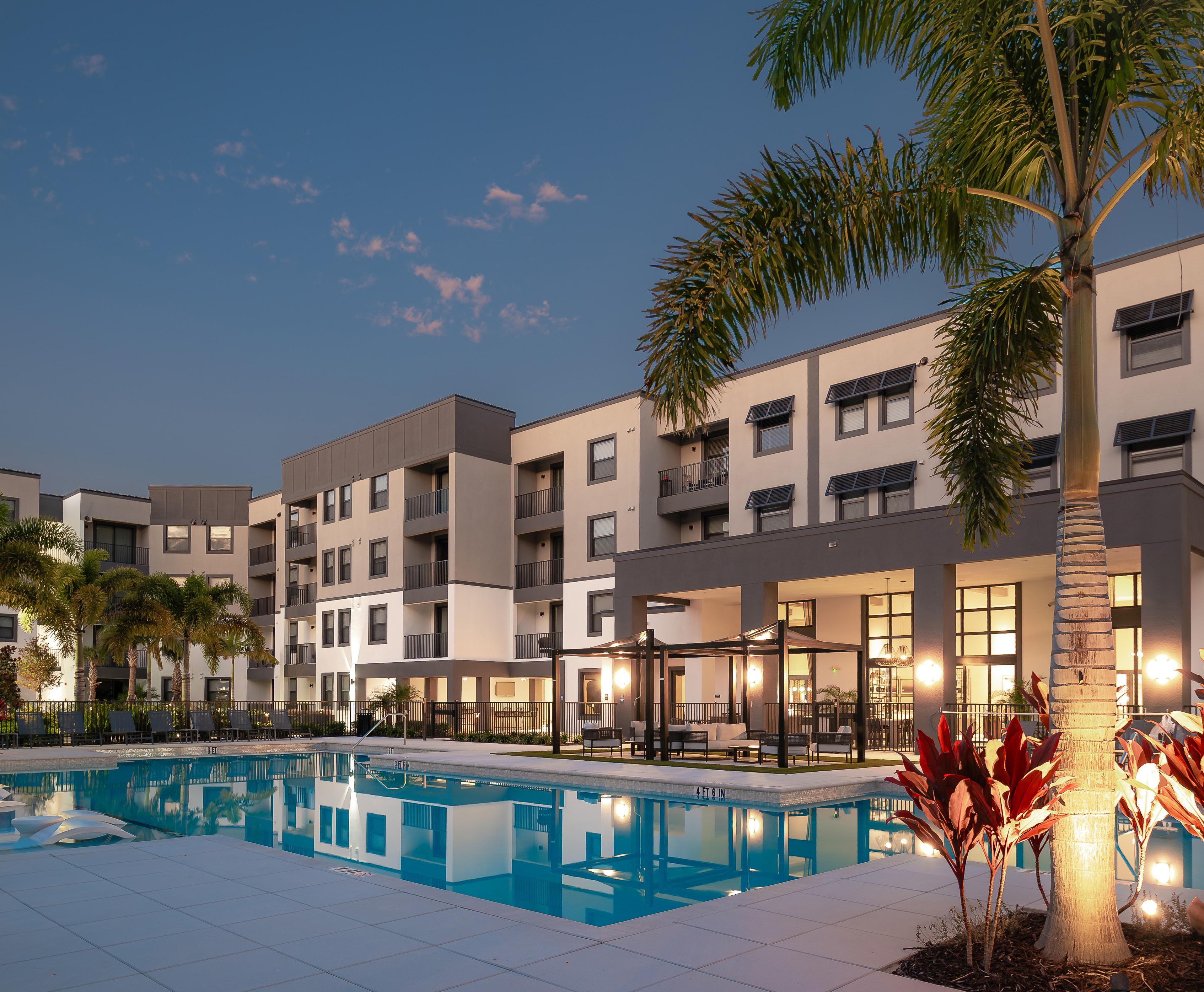 The architecture features clean, modern forms, a timeless palette, and durable stucco over concrete block for long-term quality. Light-filled interiors and resort-style, wellness-focused amenities support comfort, productivity, and relaxation.