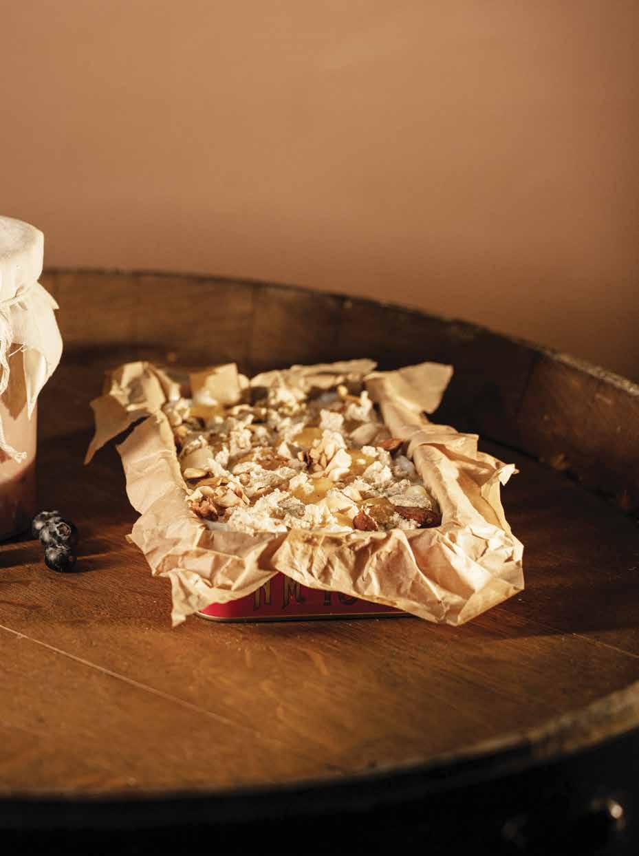 6. Τελικό φινίρισμα Δεν πασπαλίζουμε με κανένα υλικό πριν το ψήσιμο. Αμέσως μόλις ξεφουρνίσουμε, αλείφουμε γενναιόδωρα με τη γκρεμολάτα, ώστε να απορροφηθεί