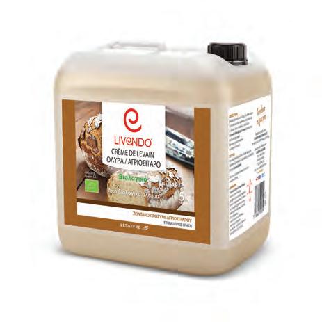 Crème De Levain, το νέο υγρό προζύμι από αγριοσίταρο Συνεχίζοντας την παράδοση της καινοτομίας, η LESAFFRE παρουσι άζει ένα νέο πρωτοποριακό προζύμι στην ελληνική αγορά, ενεργό –ζωντανό – βιολογικό, με βάση το αγριοσίταρο (αρχέγονος σίτος που καλλιεργείται εδώ και 6.000 χρόνια). Σχεδιάστηκε ειδικά για άσπρα και κίτρινα άλευρα και προσδίδει στο τελικό προϊόν μοναδικά αρώ ματα και γεύση. Ιδανικό για αργή ωρίμανση με την τεχνική Poolish για την παραγωγή κορυφαίων ελληνικών παραδοσιακών ψωμιών. Η εταιρεία LESAFFRE προσφέρει στους επαγγελματίες μαγιές, βοη θητικές ύλες αρτοποιίας, προζύμια και προϊόντα γεύσης αδιαμφισβή τητης ποιότητας, συνεχίζοντας με επιτυχία τη μακροχρόνια πορεία της στην παγκόσμια αγορά. LESAFFRE ΕΛΛΑΣ ΑΕΒΕ, Τηλ. 210 5580240, lesaffrehellas@lesaffre.com Cake με 75% αλεύρι χαρουπιού H FOODSTUFF παρουσιάζει ένα νέο υπέροχο cake με 75% αλεύρι χαρου πιού, μέλι και καστανή ζάχαρη. Το νέο προϊόν είναι νόστιμο, γευστικό και υγι εινό με τη διατροφική αξία του χαρουπιού. Διατηρείται μαλακό και φρέσκο για μεγάλο χρονικό διάστημα, χωρίς να περιέχει χρωστικές και συντηρητικά. FOODSTUFF AE, Τηλ. 210 9717197, info@foodstuff.gr