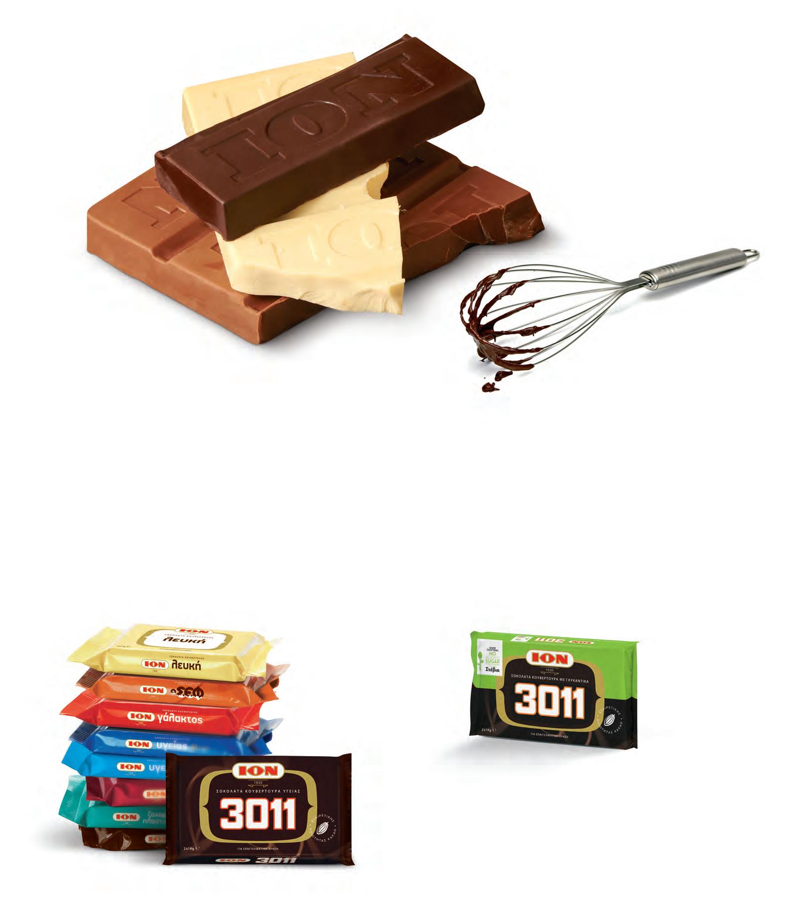 τα οποία διατίθενται σε γεύσεις σοκολάτα, λευκή σοκολάτα, σο κολάτα γάλακτος και πικραμύγδαλο. Το προϊόν είναι έτοιμο για χρήση, αφού πρώτα ζεσταθεί στους 32-38°C. Δεν σπάει πά νω από τους 12°C και δεν κολλάει κάτω από τους 25°C. Eίναι κατάλ ληλο και για συσκευα σία κάτω από τους 25°C. Έχει πολύ καλή επικα λυπτικότητα αφήνοντας μια λεπτή στρώση στο τελικό προϊόν, στο οποίο χαρίζει ξεχωριστή γεύση. Κατάλληλο, επίσης, για επικάλυψη σε βασιλόπιτες, κέικ, μπισκότα, κοκ, εκλέρ. ΑΚΤΙΝΑ ΑΕ, Τηλ. 210 5122410, www.aktinafoods.com