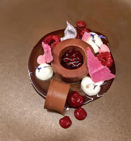 1. Πανακότα σοκολάτας με βατόμουρα και αφρό από πικραμύγδαλο. 2. Με την υπογραφή του pastry chef Dennis Paras, οι τάρτες φιστικιού με μαύρη σοκολάτα και κανέλα πυροδοτούν γευστική "απογείωση". LAST PAGE 02