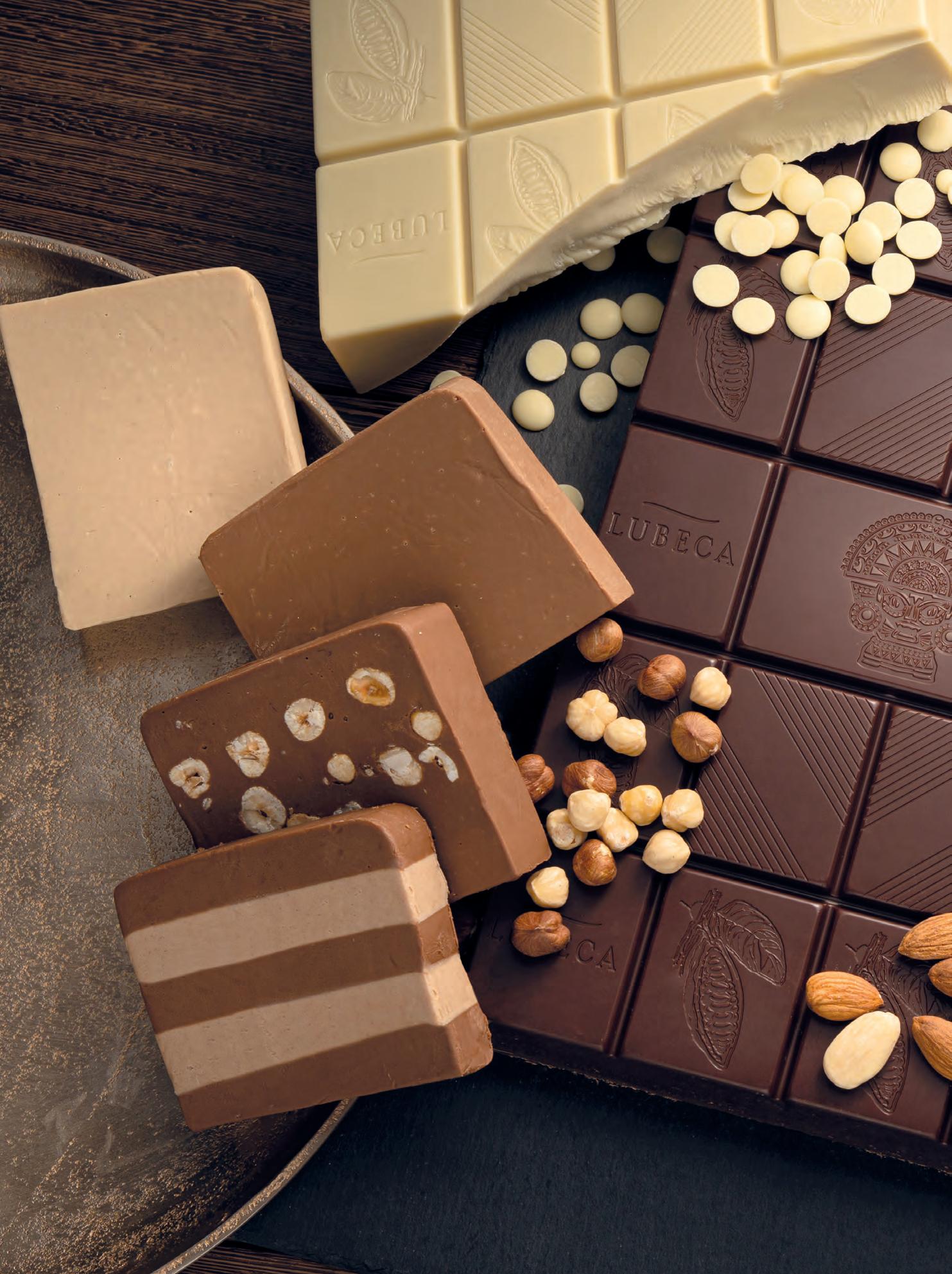 σοκολατών. Έτσι, πέρα από τα κορυφαία μάρτσι παν και τα νουγκά, ήρθε η ώρα οι Έλληνες να γνωρίσουν και το σοκολατένιο πρόσωπο της Lubeca, μέσα από τις πραλί νες και τις κουβερτούρες της. Η γερμανική εταιρεία, που εκπροσωπείται στην Ελλάδα αποκλειστικά από τη ΣΤΕΛΙΟΣ ΓΙΑΝΝΙΚΑΣ ΑΕΒΕ, υπο γράφει μια σειρά από εκπληκτικές σοκολάτες κουβερ τούρες, μεταξύ των οποίων μια θαυμάσια σειρά από Origin σοκολάτες, βιολογικές και τρεις ice.