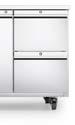 Let op: De laden zijn geschikt voor GN1/1 bakken tot een maximum diepte van 150mm (1/2 lade modellen) of 100 mm diepte (1/3 lade modellen).