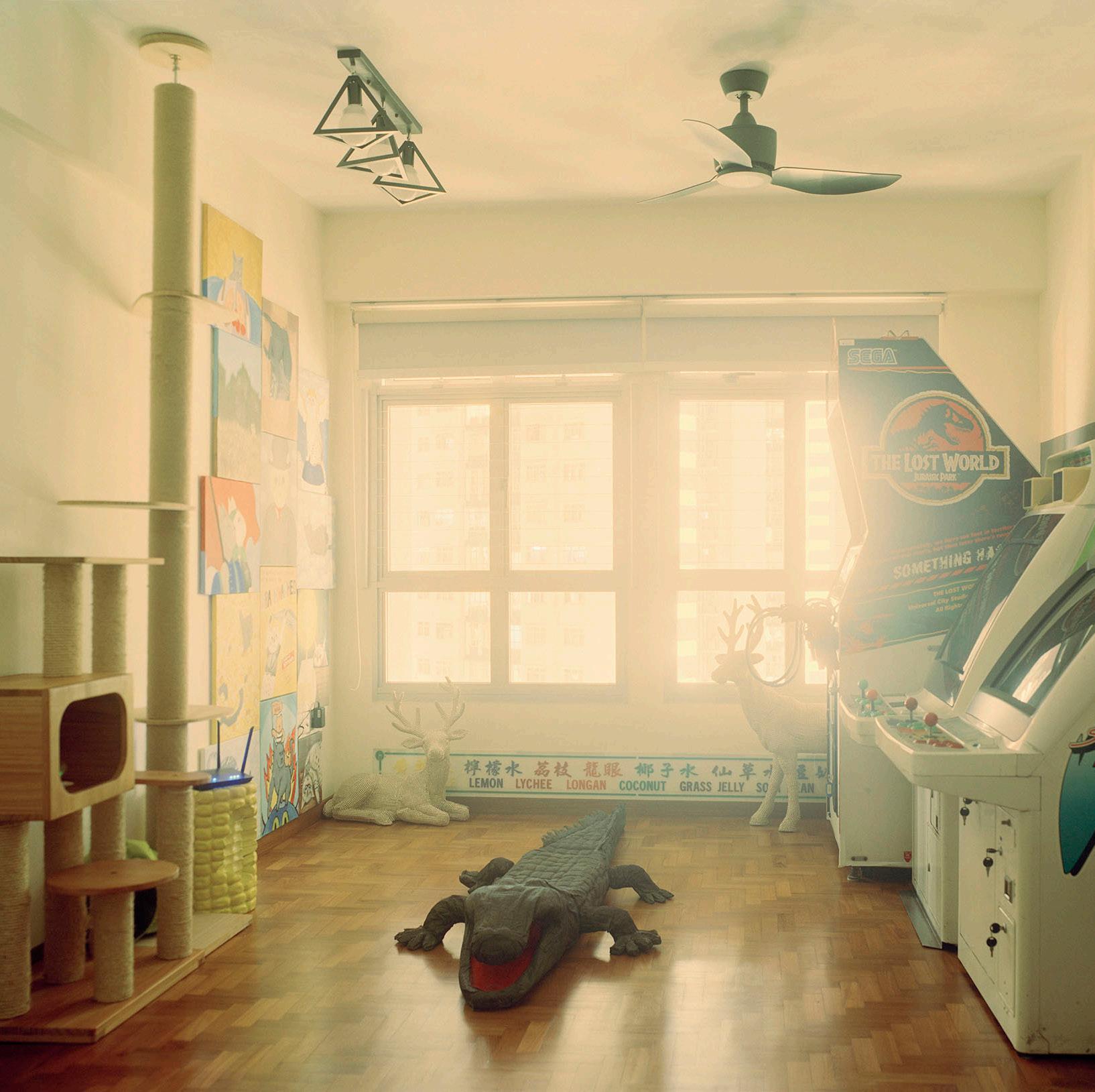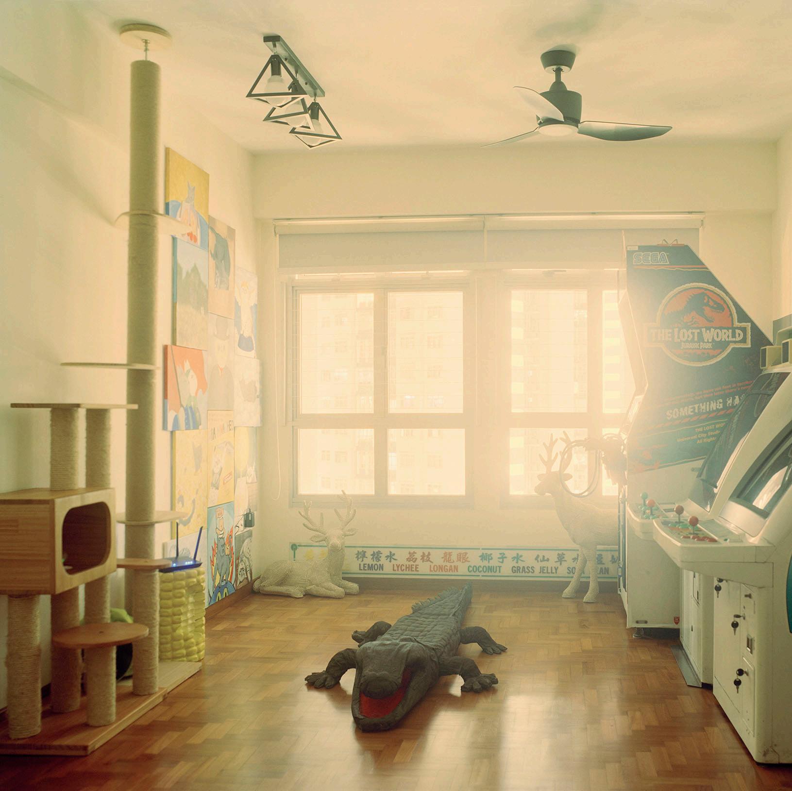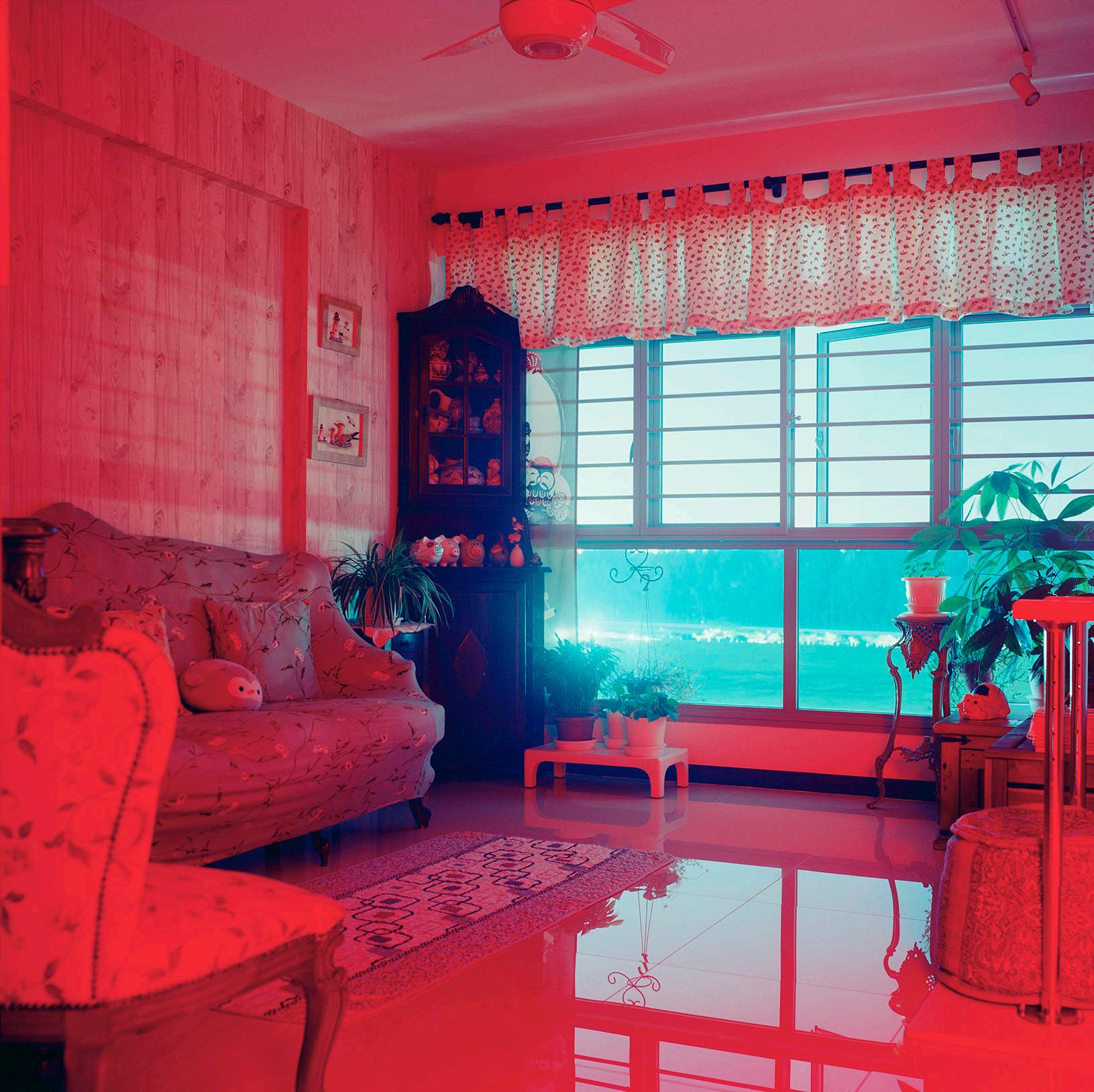 The living room is a recurring subject in Chang’s Silent Knight. In Singapore, as in many other countries around the world in the 21st century, the living room functions as the site for the making of shared memories, the gathering of family and friends, and the celebration of annual festivities and life events. It has, perhaps more than any other space within the house, become a synecdoche for the house itself. French philosopher Gaston Bachelard in The Poetics of Space (1994) accounts for the universal resonance of the home in terms of inhabitation, which is deeply rooted because “the house we were born in has engraved within us the hierarchy of the various functions of inhabiting. We are the diagram of the functions of inhabiting that particular house, and all the other houses are but variations on a fundamental theme.”4 Chang’s images thus echo our own individual experiences of inhabitation and yet appear dissimilar at the same time. In fact, the images provoke more questions than provide answers, keeping the identity of each home and its secrets at an arm’s length from all onlookers, except its inhabitants. Therein this gap between knowing and unknowing lies the artist’s invitation to imagination and reflection. She asserted, “I am always interested in how viewers draw from their own experiences and interpret my works because they complete the image.”