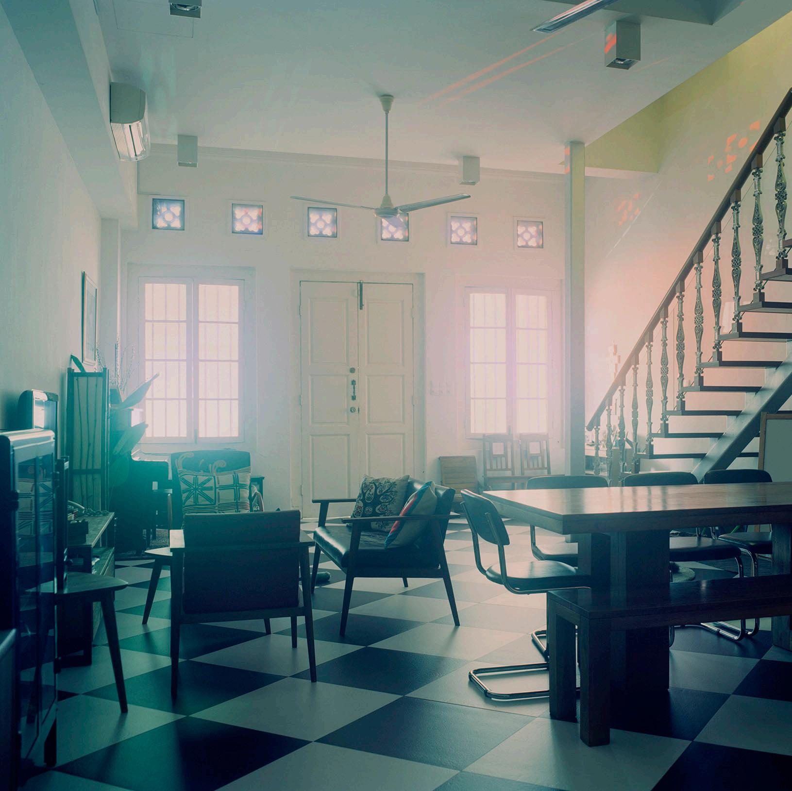 Every process Chang undergoes to create each of the works in Silent Knight and Sheltered Dreams first begins with a visit in person to the houses depicted in her photographic works. The relationships that grew out of interactions with the residents are still treasured by the artist, for she is deeply aware they had invited her into their private lives and permitted her a rare glimpse at the everyday routines which shaped and reshaped these domestic spaces. In addition, it is part of her ritual to commune with participants, often over a meal together, before deciding on the angle for the camera. Only when the residents retire to their bedrooms for the night, leaving the living rooms in darkness, does Chang finally begin to make the image using her long-exposure technique. It is a lengthy process that takes hours on end, concluding only when the residents awake. During this time, which averages around eight hours, she keeps vigil, keenly monitoring the entire process. Chang recalled, “I am alone in the darkness, listening to the silence. I give in to the calmness around me, as I watch the play of light and shadows. I am but a bystander in their lives for this one night. I feel sad that I may never be here again. I want to make the most of this moment, to take it all in.”