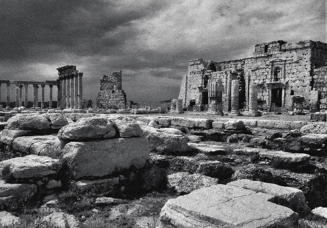 Nelle immagini in bianco e nero Elio Ciol si fa testimone di un paesaggio che non sfugge alla fragilità del tempo, di quel tempo in cui l’uomo è disposto a cancellare monumenti e memoria di un passato che sente ormai lontano. Nel 1996 Ciol visita le rovine di quella che fu la città di Palmira in Siria, un antico centro carovaniero che i Romani portarono al suo massimo splendore arricchendola con monumenti, terme, un teatro e una lunghissima via colonnata, divenuta simbolo della città. Oggi questo passato glorioso è stato in parte cancellato dai carri armati, missili e dinamite che hanno ripetutamente lacerato gli edifici monumentali più importanti come il tempio di Baal, i colonnati del Decumano, il teatro e i Propilei che avevano retto alle leggi del tempo e alle forze della natura. E’ in questa chiave che Ciol legge il tempo, la storia, come un