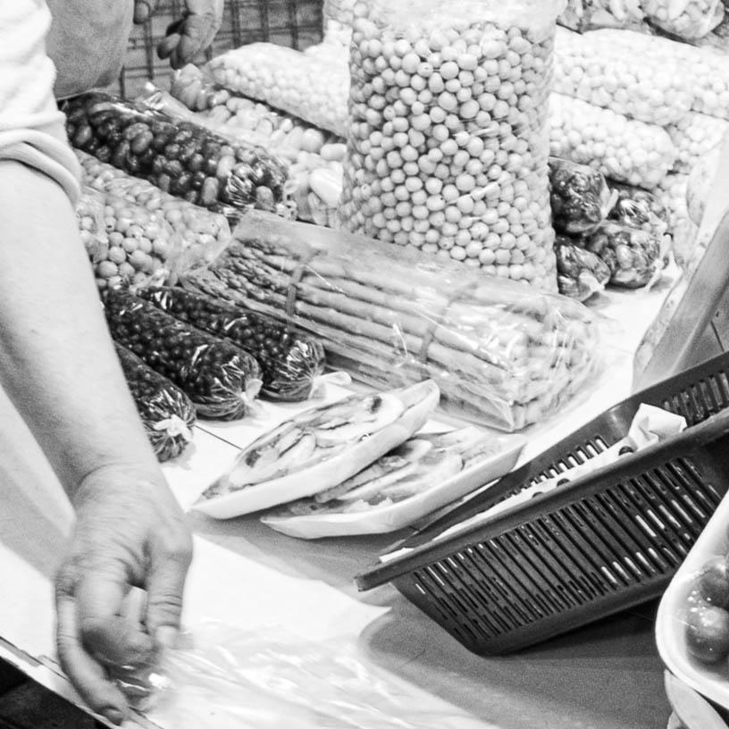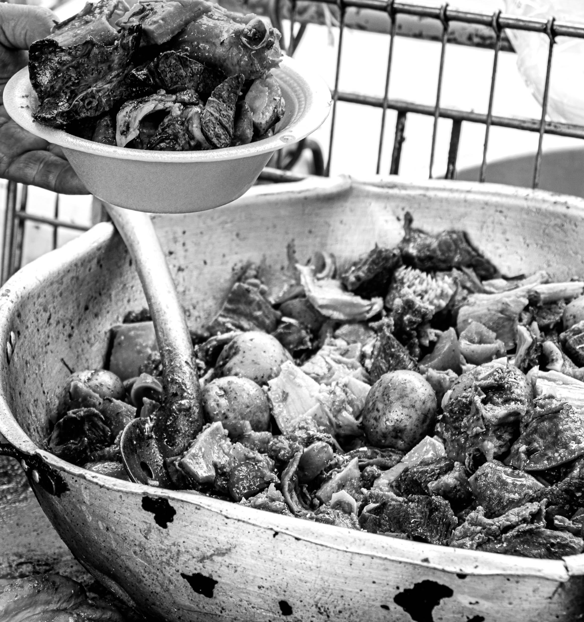Doña María, vendedora de piquete y chunchulla en la plaza de mercado del Restrepo