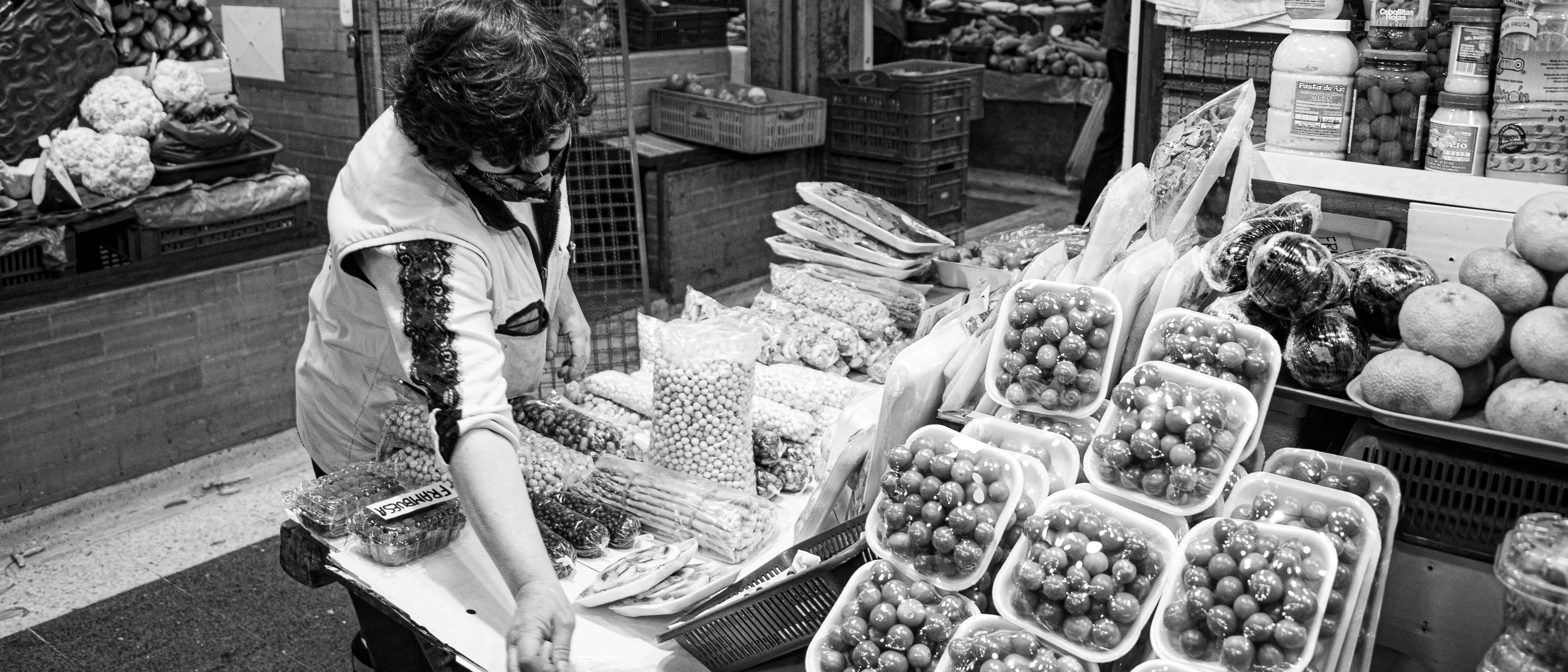 Doña Ana, vendedora de hierbas y aromáticas en una esquina de la plaza del Restrepo, Bogotá.