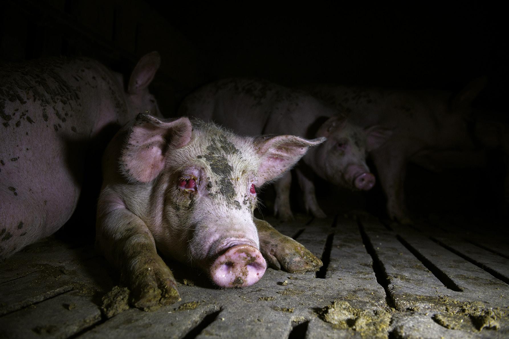 In Spagna, Francia e Portogallo è stata lanciata Let’s Talk About Pork, una campagna finanziata dall’Unione Europea, per dimostrare che il settore segue alti standard di sostenibilità e biosicurezza: garanzie che gli animali non soffrono e che abbiano spazio sufficiente per muoversi liberamente. Chi si occupa dei diritti degli animali afferma che l’industria rende difficile l’accesso alle aziende, per i controlli. E che sono costretti a introdursi nelle strutture segretamente, spesso di notte, al fine di documentare ciò che accade all’interno. Le fotografie di questa storia sono state realizzate durante una serie di incursioni notturne in varie strutture di tutta la Spagna. Missione della Fotografia (anche questa): mostrano che la situazione non è quella dichiarata. A mio giudizio, questa storia avrebbe dovuto essere Primo premio della categoria Environment.