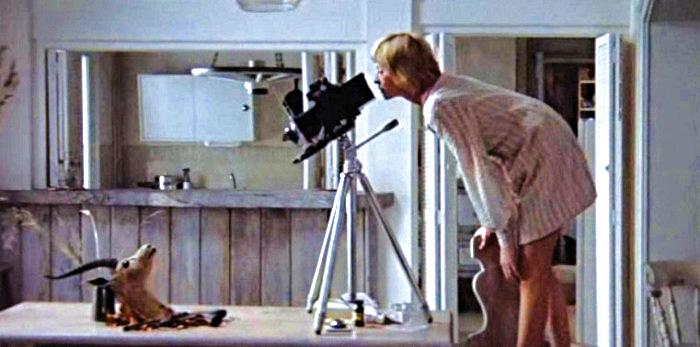 Nella sceneggiatura/scenografia, Cathryn allestisce una composizione con foglie autunnali, rami spezzati e una testa di stambecco, per il libro che sta scrivendo. Al culmine (?) della propria paranoia, distruggerà il set e, poi, annienterà addirittura la Speed Graphic, sparandole contro con una doppietta da caccia. Prima di dedicarsi alla conclusione omicida... ovvia.