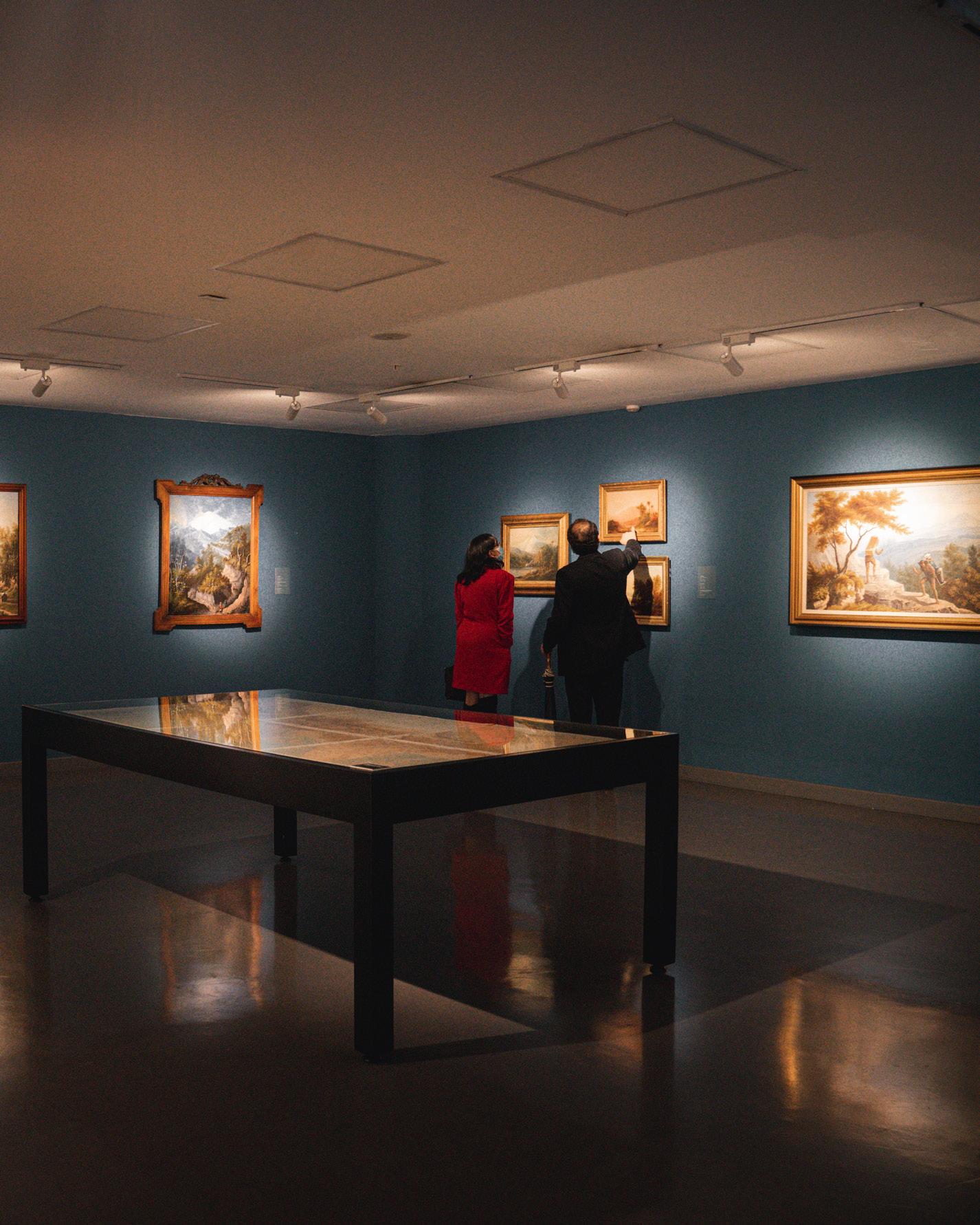 En el primer caso la cro mática oscura que se combina con las obras de arte nos lleva a sentirnos dentro de un ambiente de observación, ya que deducimos que nos encontramos dentro de un museo o galería.