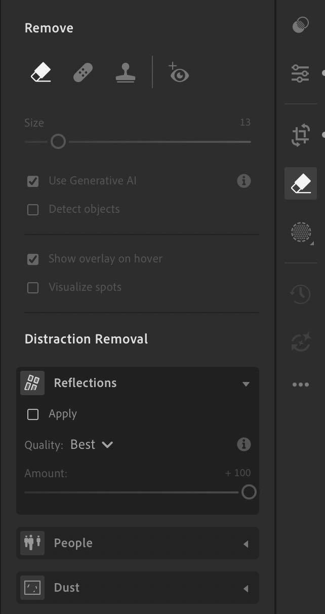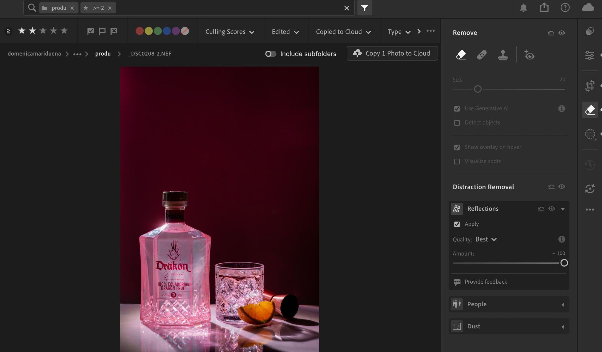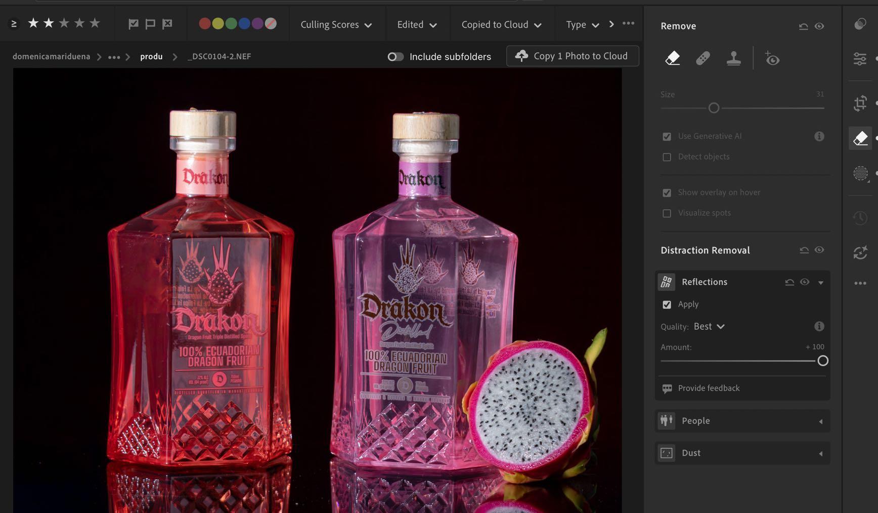 5. Por último, en lightroom, en eliminación de distracciones aplicamos eliminar reflejos.
