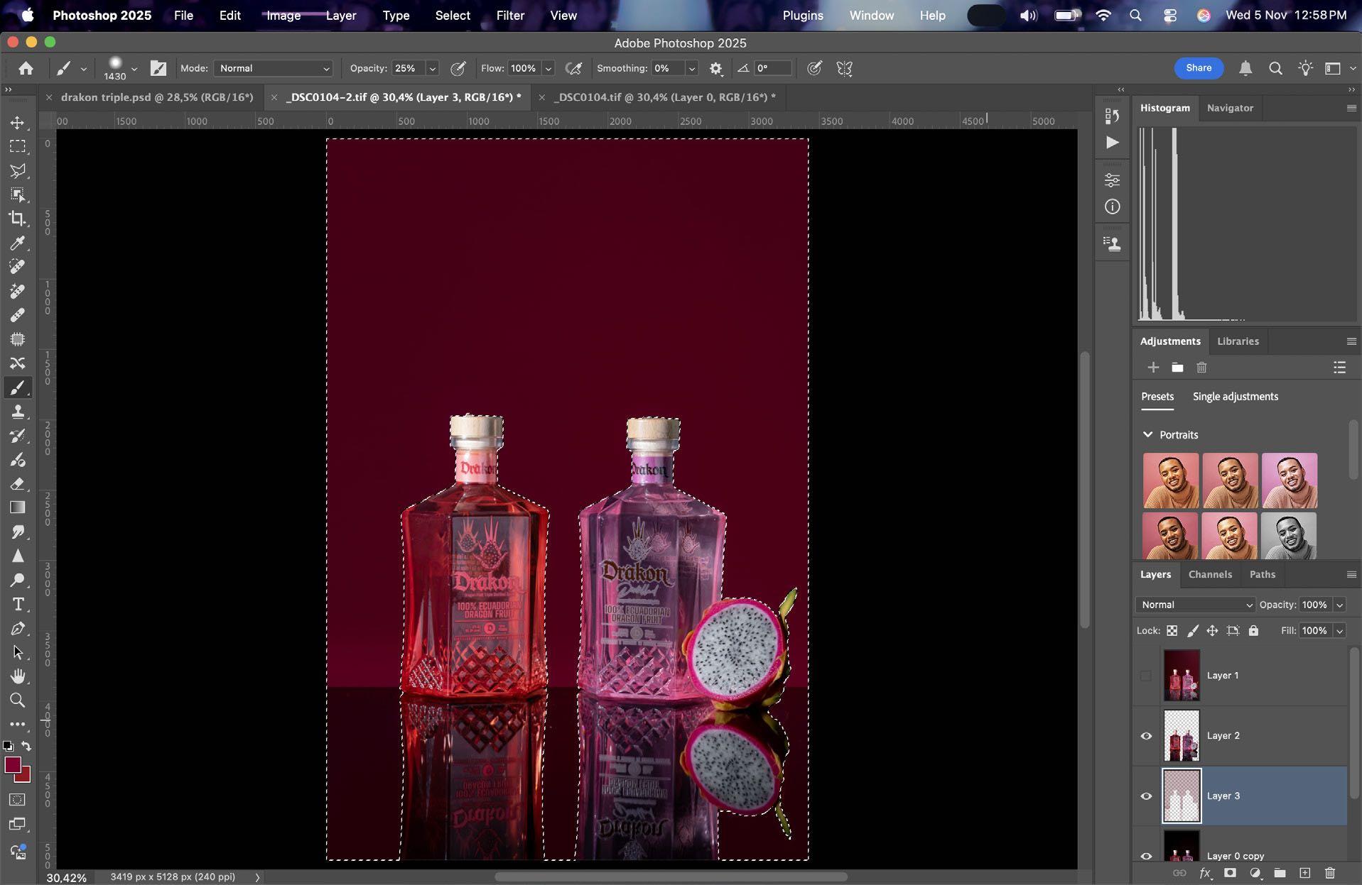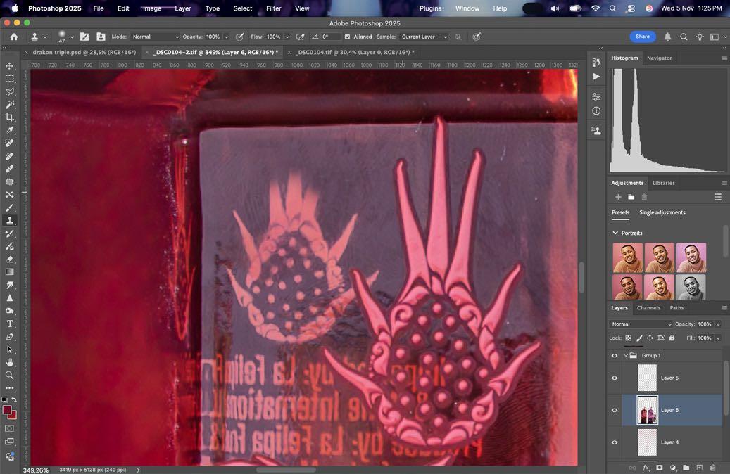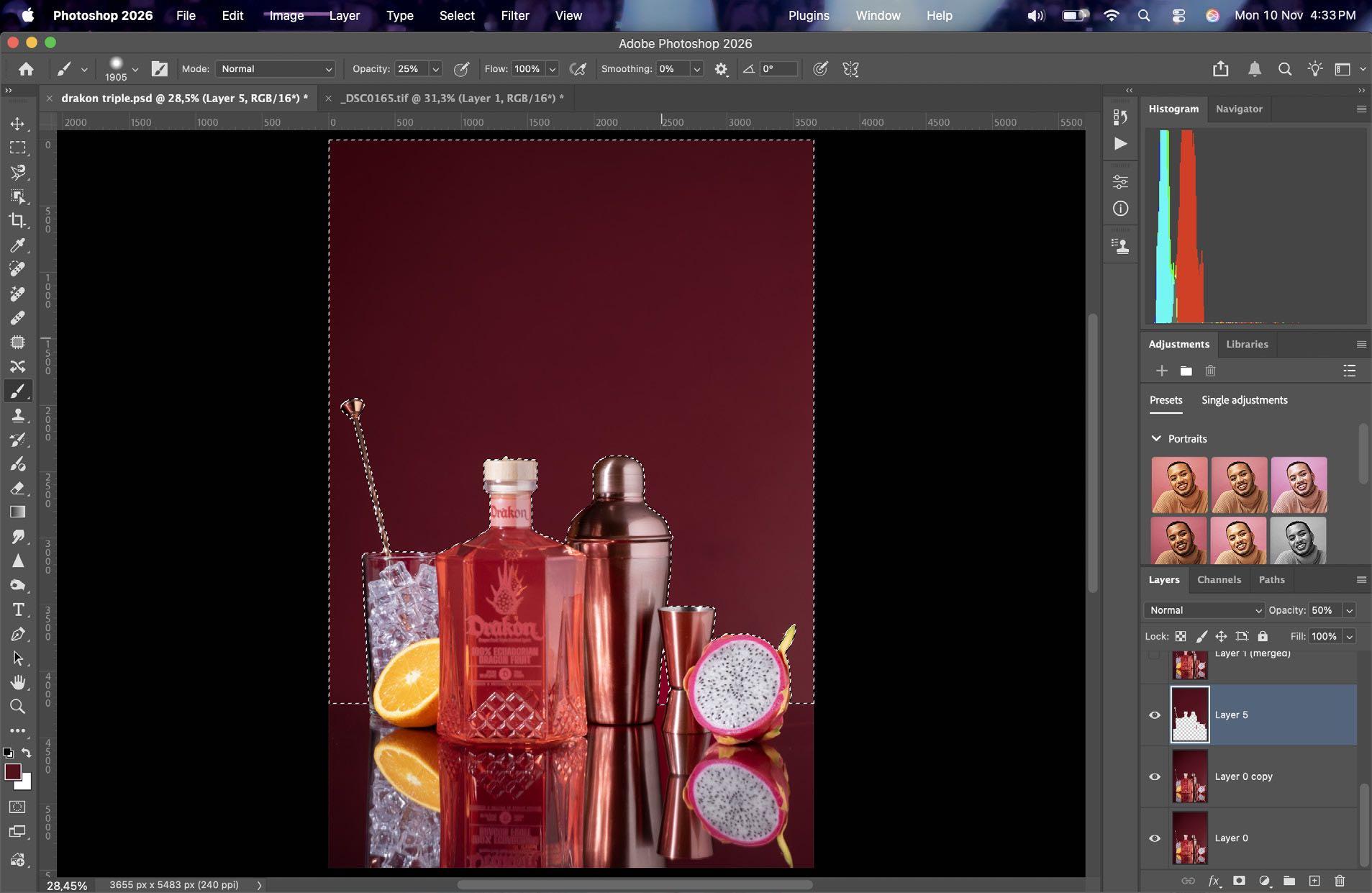 En post-producción clona gotas para pulir y darle últimos toques a la fotografía final.