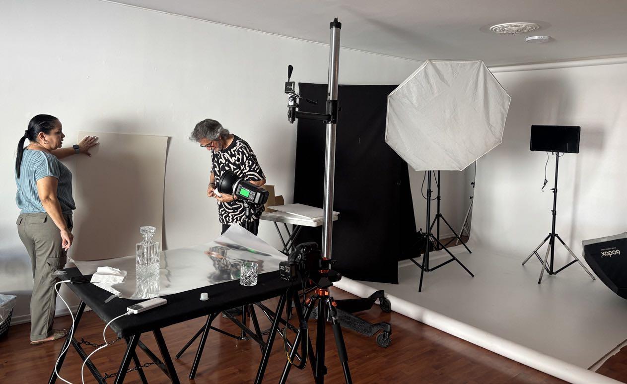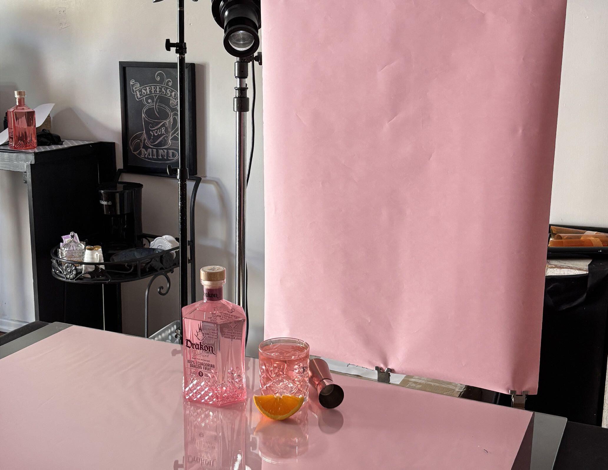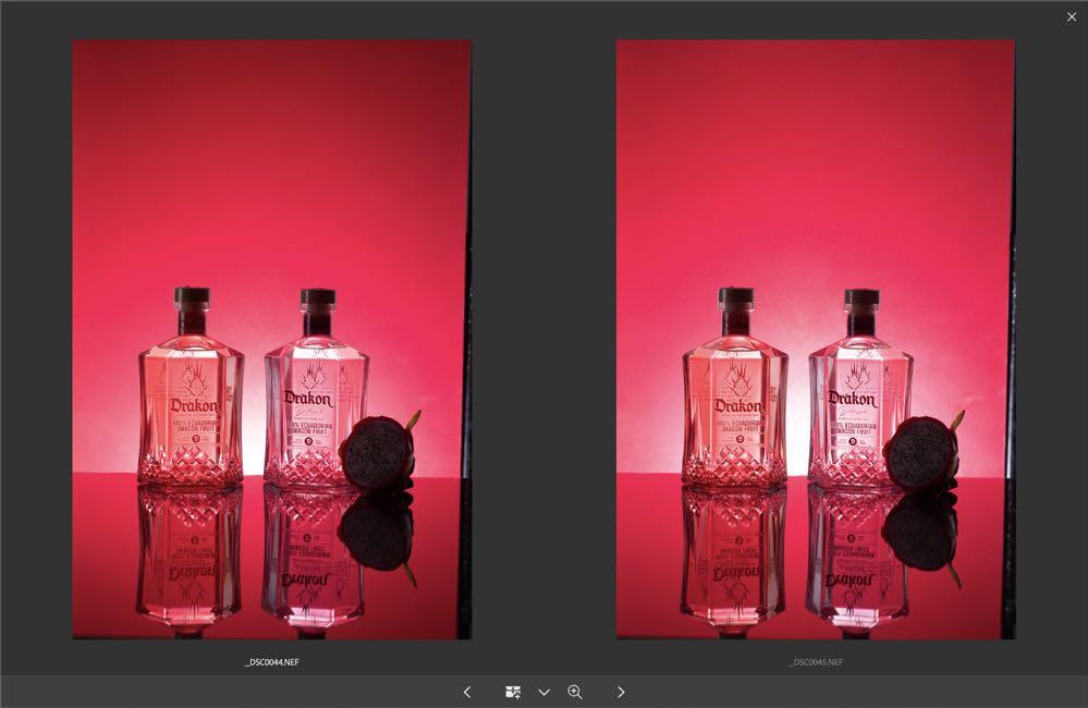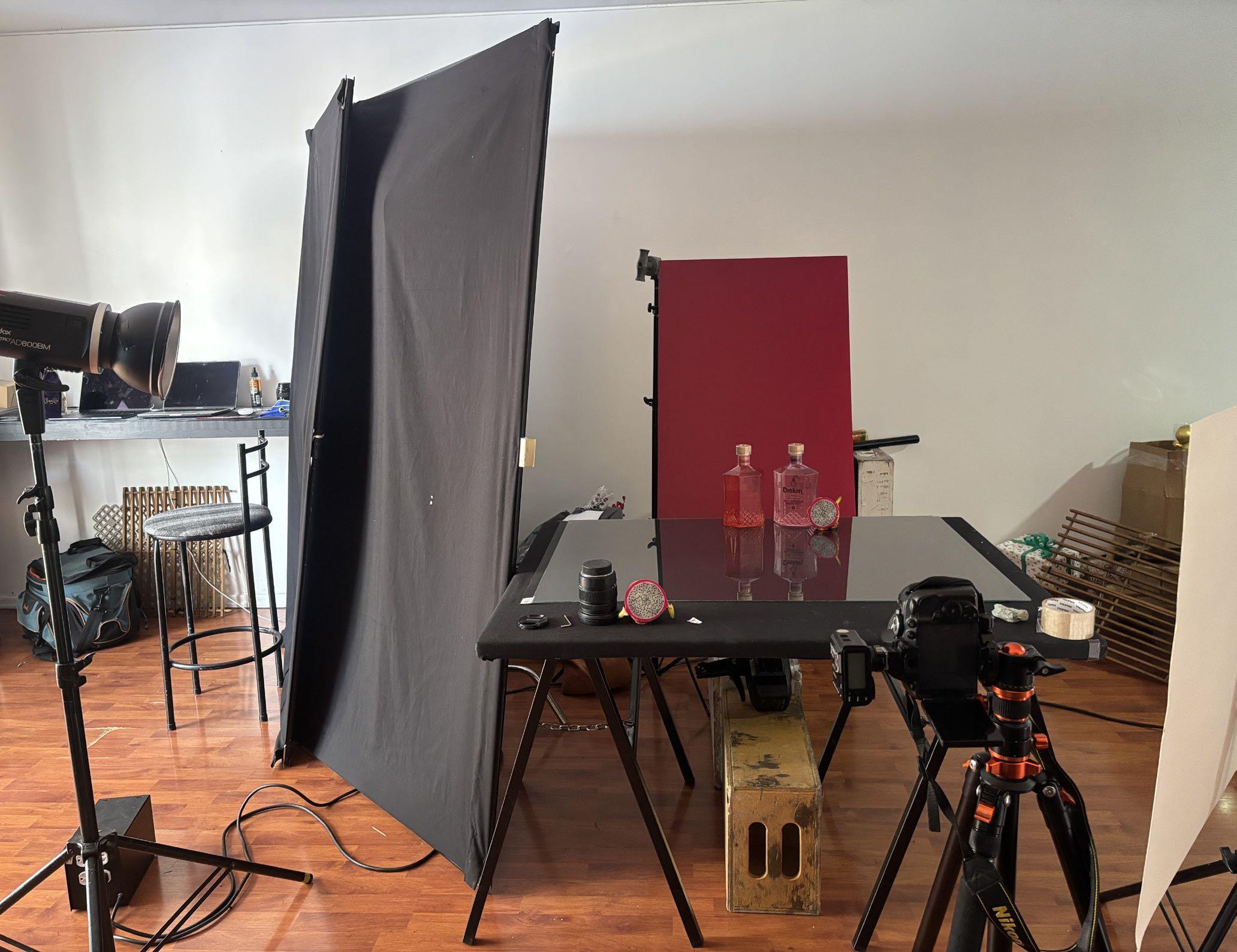 Hicimos algunos ejercicios para probar varios esquemas lumínicos, botellas y fondos.