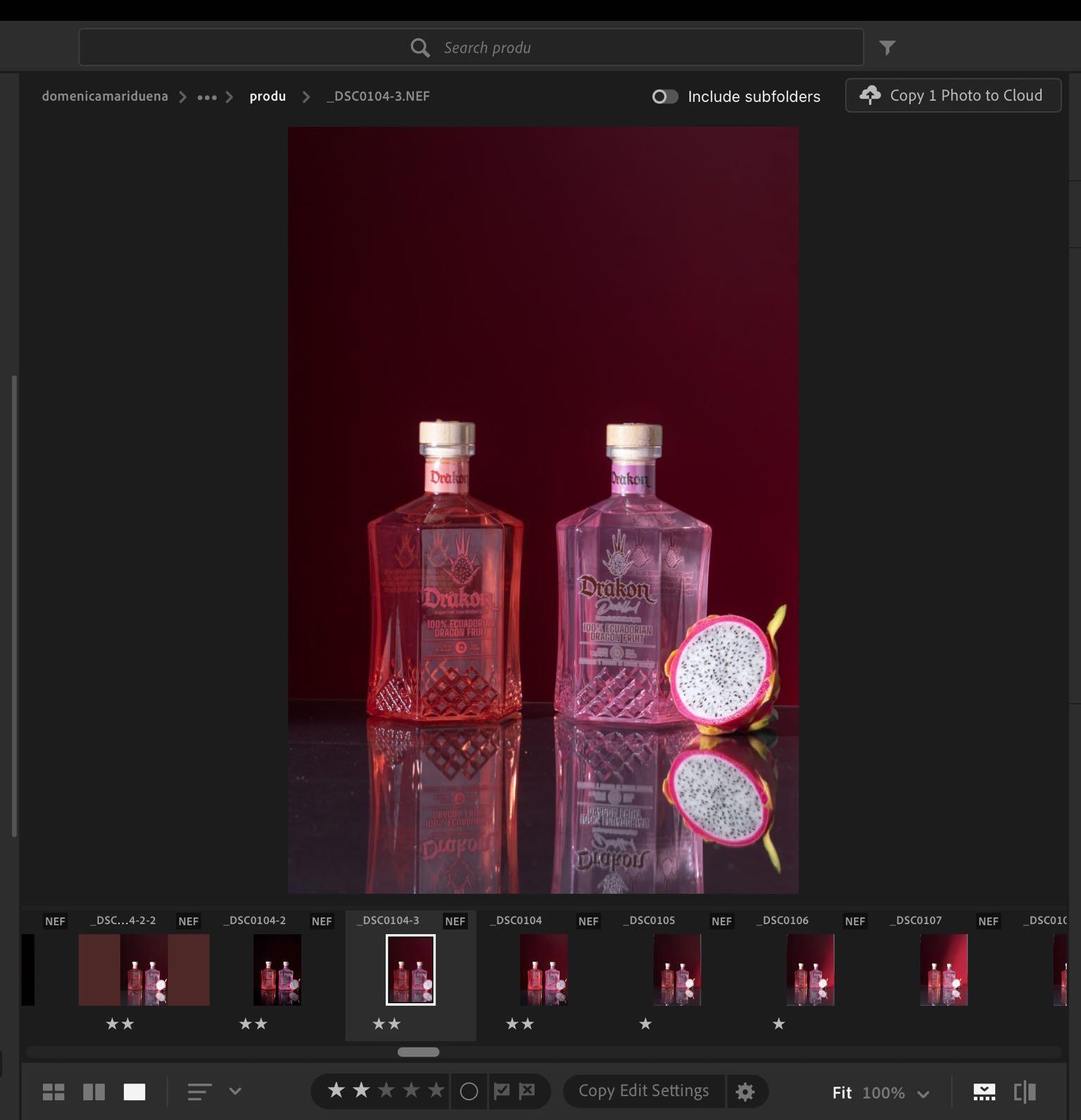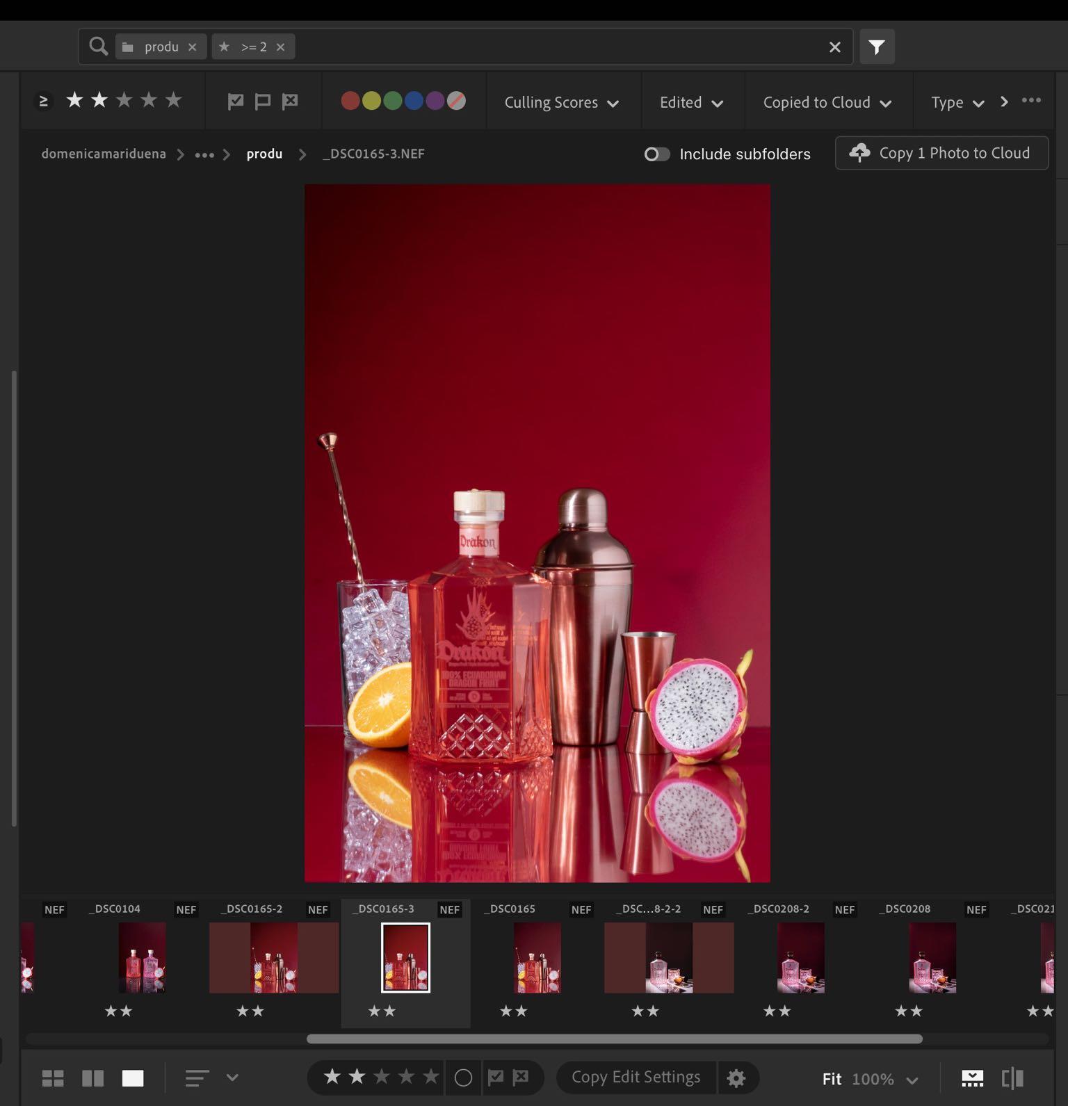 8. Debido a que en esta foto la tapa y la fruta no estaban bien iluminadas al ser un contraluz, hicimos otras tomas iluminando adelante para mejorar esta parte, poniendo los mismos parámetros en lightroom para que vaya acorde a lo que tenemos dentro de nuestra fotografía escogida.