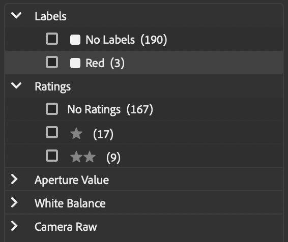 Rating, esto nos ayuda para escoger con qué fotografías trabajaremos.