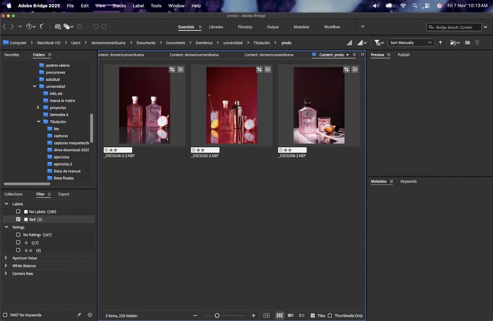 En bridge es donde vemos todo nuestro flujo de trabajo y escogemos con qué foto(s) trabajaremos.