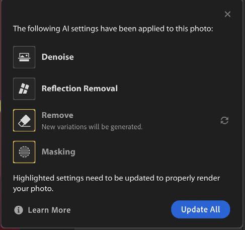 • Cuando se usa esta herramienta muchas veces se activará el ícono de color rosa para actualizar los ajustes con IA, ya que se puede notar el cambio de color en ciertas partes.Y una vez actualizado, se arregla.