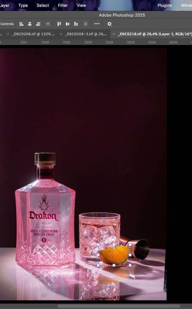 10.Con la herramienta de sobreexponer y subexponer vamos a realzar más los elementos dentro de nuestra fotografía, como la botella y la naranja.
