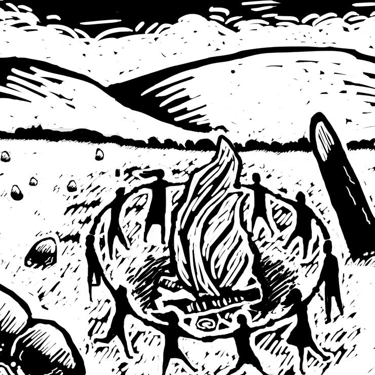 En Quillusara, cada gesto tiene memoria. Las ilustraciones muestran a la comunidad reunida entre los monolitos, ofreciendo cantos, fuego y ofrendas a la tierra. Los rituales no solo buscan protección o fertilidad, sino mantener el diálogo con los ancestros y con la naturaleza, activando un espacio donde lo sagrado y lo cotidiano se encuentran.