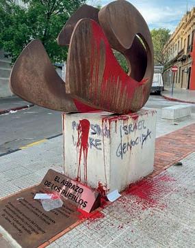 “ El abrazo de los pueblos”, un monumento que homenajea a los primeros inmigrantes judíos habitantes de Villa Muñoz (la mayoría perseguidos políticos), fue vandalizado por un grupo autodenominado “Anarquistas contra el genocidio”. La obra fue inaugurada hace pocos meses, promovida por Charna Furman, una militante contra la dictadura, que fue presa política y salvajemente torturada. Los perpetradores del ataque argumentan que “el Comité Israelita del Uruguay usa el monumento para lavarse la cara” por el genocidio de Israel contra Palestina –una estupidez injustificalbe–, que no hace otra cosa que alimentar la idea del antisemitismo, muchas veces usada para justificar cualquier cosa. Este tipo de necedad es propia del odio mundial que genera la interminable masacre del ejercito israelí contra el pueblo palestino en la Franja de Gaza. l