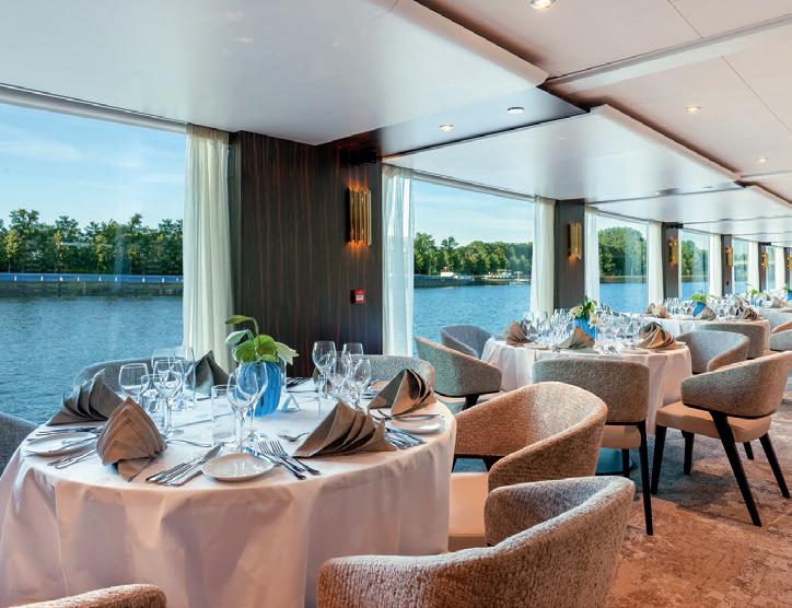 This is one of the most versatile spaces on board, where you may find enthralling entertainment, special highlight dinners, or perhaps simply an elegant place to decompress, drink in hand, or adore stunning views of the river’s shores.