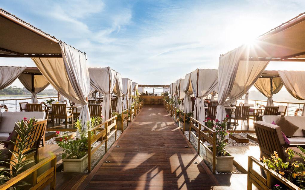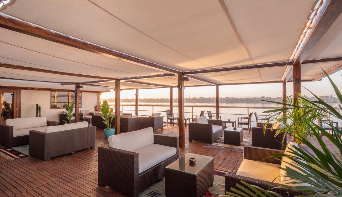 The Five-Star MS Farah offers 60 deluxe cabins and 2 Royal Suites, a restaurant, bar and lounge, library, sauna and steam room. Relax in the Paulo Coehlo library, enjoy an Egyptian cooking class on board or view the stars from the sun deck telescope. All cabins and suites are equipped with LCD TV, mini bar, private safe box, internet connection, ensuite facilities and air conditioning. For the most comfortable night’s sleep a pillow menu is provided with a choice of soft, orthopaedic or water pillow. Enjoy mealtimes in the restaurant with a la carte dining and lavish buffets for breakfast and lunch. With 85 crew members on-board you can expect the highest levels of service. Sailing every Monday from Luxor the MS Farah provides every amenity you need to sail the Nile in complete luxury.