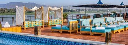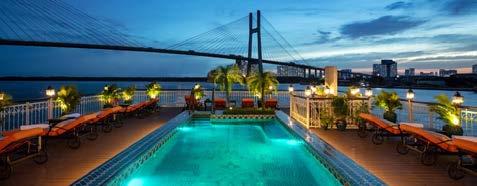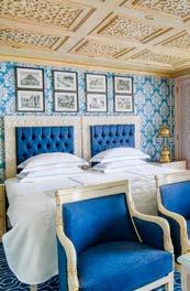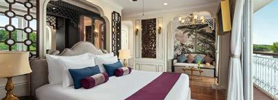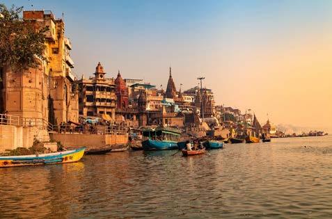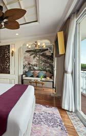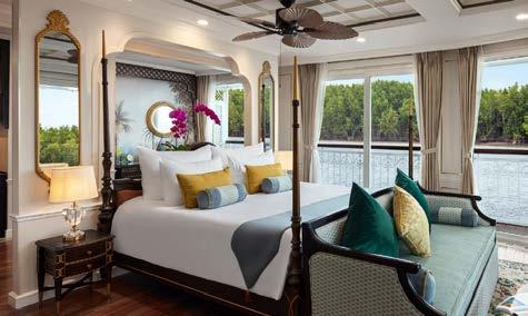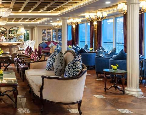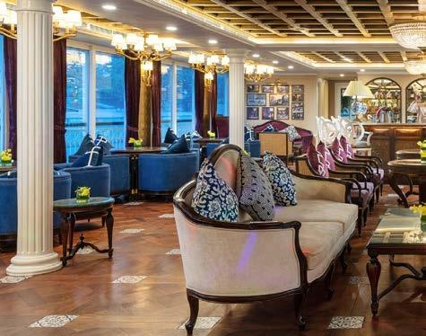 EXPECT THE UNEXPECTED ONBOARD THIS SERENE OASIS. What better way to cruise along the holiest river in the world, the Ganges River, than onboard a gorgeous boutique hotel? The Ganges Voyager II holds dear to it all the comforts of a five-star hotel, with high-ceilinged suites, French balconies with floor-toceiling glass doors, cosy sitting areas and spacious bathrooms with rain showers. Drawing design and décor inspiration from India’s colourful palette, she features beautiful hand-painted murals from room to room, allowing you to be immersed in the culture of this captivating country before ever stepping foot onshore. It’s the most luxurious way to see India.