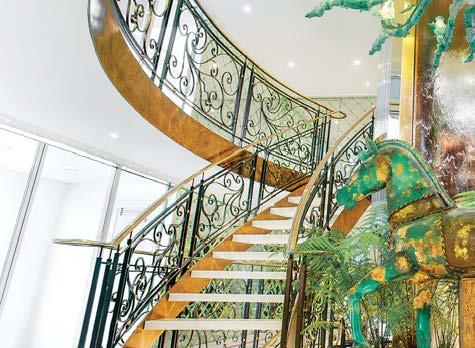 The bright and vibrant S.S. Antoinette sails the Rhine River, with accents that will leave you speechless. Take her Venetian glass mirrors, stunning marble bathrooms, enclosed pool, onboard cinema dressed in vintage movie posters, L’Orangerie Sky Lounge and gorgeous two-story foyer, for example. The foyer’s focal point?