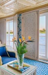 As part of the only luxury river cruise line in Egypt, the newest ship on the Nile River captures the essence of the Great Sphinx of Giza. S.S. Sphinx’s reimagined design scheme will bring the beauty of the region to life onboard, with locally sourced Egyptian fabrics, artwork and hand-carved furnishings. S.S. Sphinx will steer you to numerous bucket-list destinations, filling you with endless wonder and intrigue as you sail past man-made marvels, wonders of the world and ancient temple complexes. This ship features 26 suites, two gourmet dining venues, a massage room, a swimming pool and, not to mention, sweeping views of the longest river in the world.