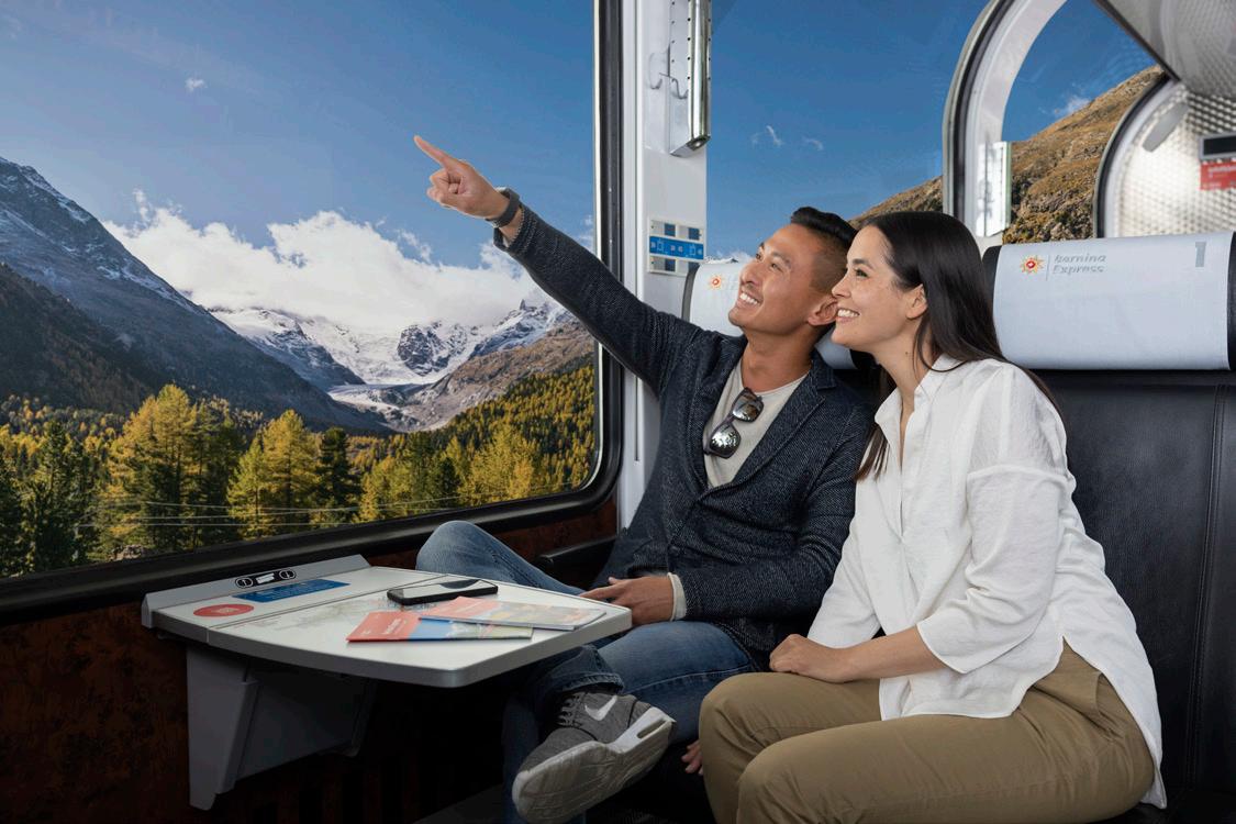 • Journey on the GoldenPass Line, the Jungfrau Railway to Jungfraujoch, the Glacier Express and the Bernina Express