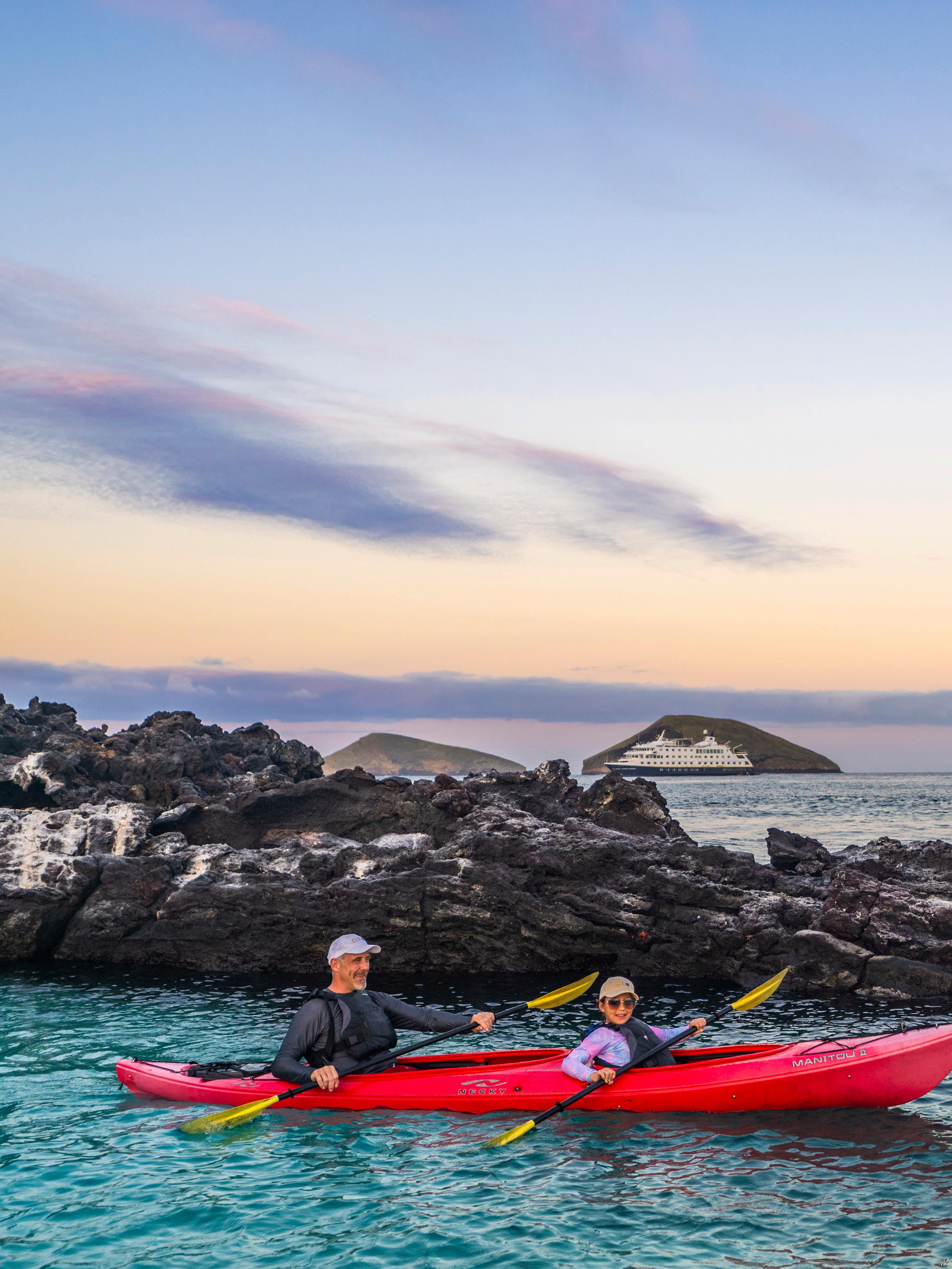 The ship is purpose-built for in-depth exploration, equipped with a full suite of exploration tools— including a glass-bottom boat, underwater cameras, a video microscope, kayaks, stand-up paddleboards and personal snorkelling gear for every guest. Her shallow draft allows for close-up access to remote shorelines that are inaccessible to larger ships, inviting deeper connection to these remarkable islands.