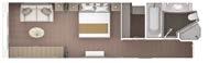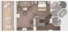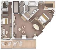 Available as a one-bedroom configuration or as a two-bedroom by adjoining with a Panorama suite (as illustrated). One suite available as a wheelchair accessible suite.