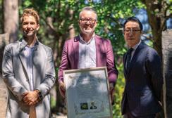 Top: Mihoko Ura, Urasenke Sydney (Japanese tea ceremony) Right: (From L-R) Ashley Filipovski, Curator Manager, Blue Mountains Botanic Garden Mount Tomah; Simon Duffy, Chief Executive, Botanic Gardens of Sydney; Deputy Consul-General of Japan, Mr Nishida Yuichiro