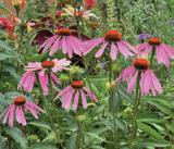 Echinacea purpurea, or purple coneflower, is a sturdy perennial, celebrated for its bold blooms and strong architectural presence. Its prominent coppery cone sits at the centre of drooping pink to magenta petals, creating a striking silhouette that holds well into autumn, feeding birds through the cooler months. Coneflowers are drought-tolerant and thrive in full sun in free-draining soils.