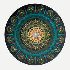 Tamsin creates mandala artworks exploring symmetrical patterns through drawing and dot painting, sharing her healing creative process and techniques through workshops in her studio.