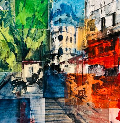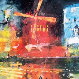 A collection of mixed-media paintings capturing the vibrant energy and atmosphere of Paris.