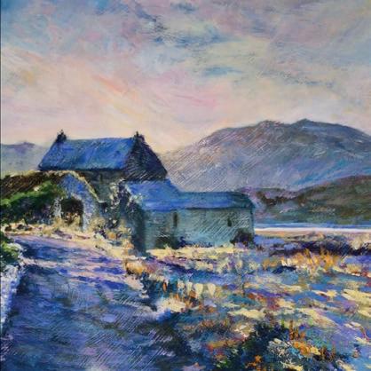 Inspired by the beautiful High Peak landscape, my paintings start unplanned, using loose acrylic washes in a watercolour manner then evolving with bold expressive knife work to create a rich textural image.