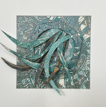 Valerie has been making prints using lino since graduating from Manchester, combining some with collage. She is interested in the idea of order and chaos, using the print process.