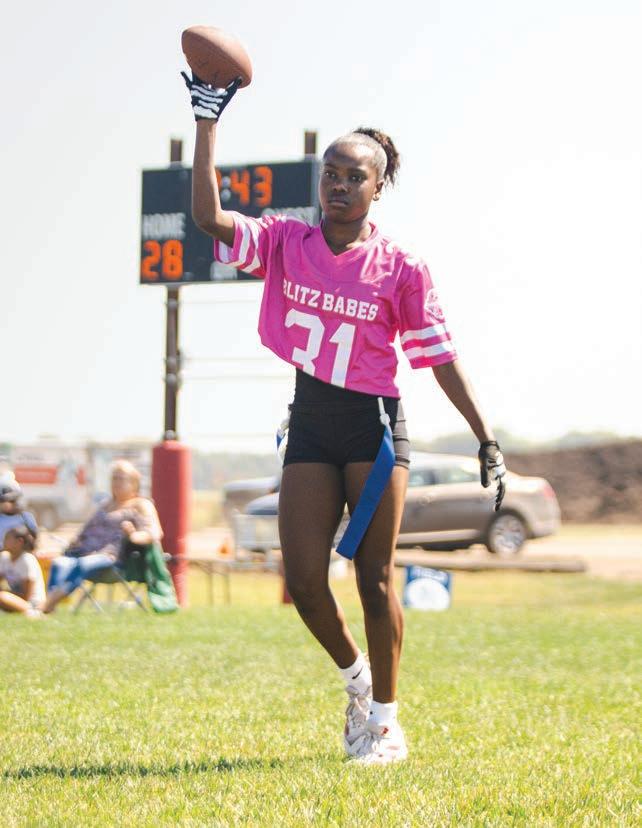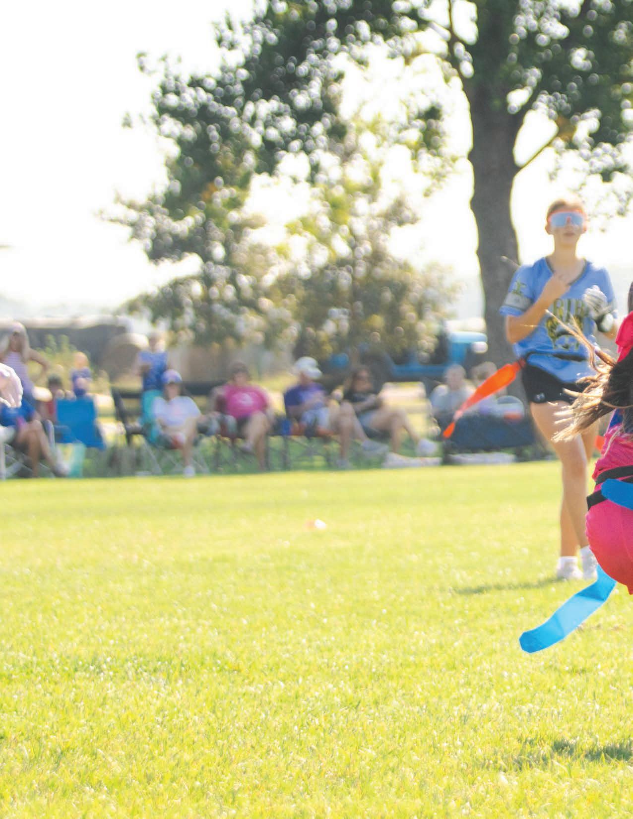 The league hosts teams with girls from sixth through eighth grade and play competitive seven-on-seven games weekly. The combination of classes was convenient for Krehbiel. She was able to coach both daughters, Audrey (11) and Abbey (13), on the same team, the Blitz Babes.