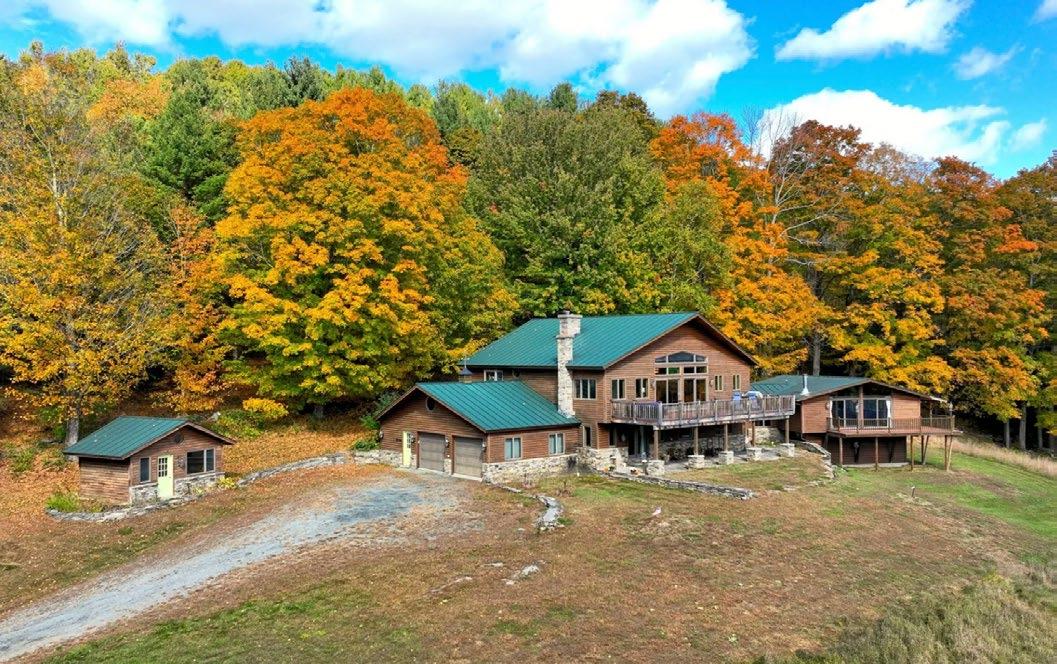 Drive along beautiful country roads lined with stone walls and wildflowers, leading you to your picture-perfect log cabin in the Catskills — where rustic charm meets modern amenities. Tucked away for total privacy and surrounded by beautifully landscaped grounds and mature plantings, this is your retreat. Seven acres of complete privacy, with a private back meadow, rolling front lawn and seasonal stream. A paved walkway leads you to an expansive deck—your future hub for entertaining family and friends with barbecues, cocktails, and soaking in the big open sky.