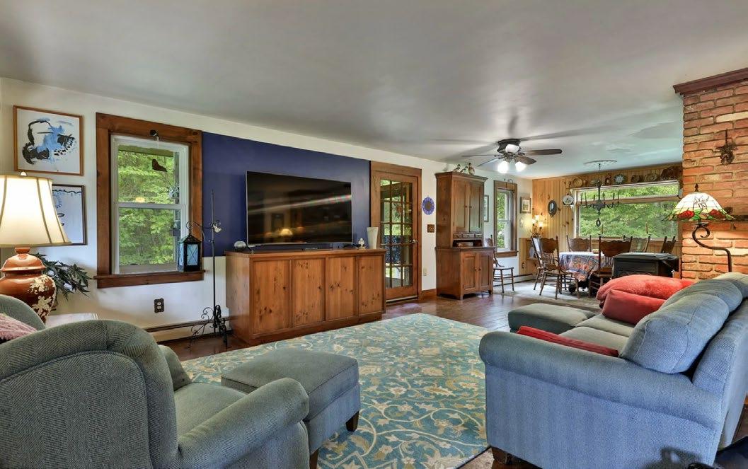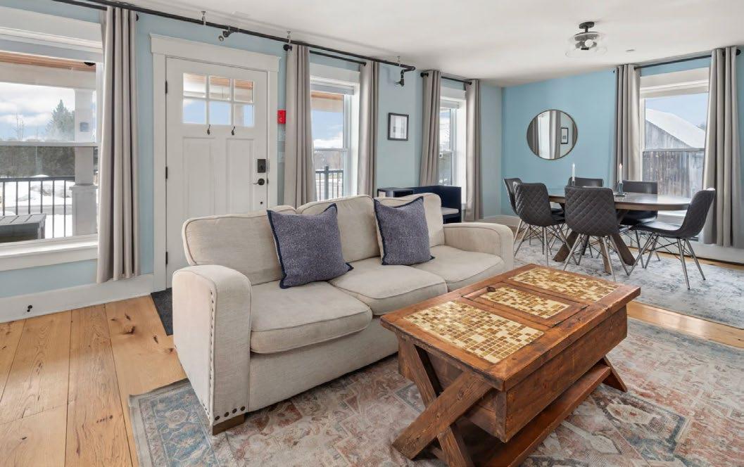 Welcome to this delightful condominium located in the picturesque May Farm building. This property perfectly blends rustic charm with modern functionality, featuring stunning exposed beams that enhance its unique character. Step inside to discover beautiful wide pine floors that create a warm and welcoming atmosphere throughout the open living space, ideal for entertaining and relaxation. Enjoy the fresh air on your inviting front and back porches, or retreat to the spacious gazebo, perfect for enjoying peaceful mornings.This condominium offers excellent potential for a home office or small business owners, allowing for work-life balance right at home.