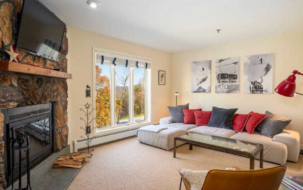 Experience the ultimate mountain retreat in this stunning ski-in/ski-out 4-bedroom, 2-bathroom luxury condo at Sugarbush Resort. Perfectly positioned for both adventure and relaxation, this exquisite property offers breathtaking mountain views and direct access to some of the best skiing in the Northeast. Oversized windows overlook Village Run, bringing in natural light and framing the beauty of the slopes. After a day on the mountain, step into a recently updated high-end kitchen, complete with top-tier appliances, quartz countertops, and custom cabinetry, ideal for preparing gourmet meals Unwind in the inviting living area, where a Jotul wood stove adds warmth and ambiance, creating the perfect apres-ski atmosphere.