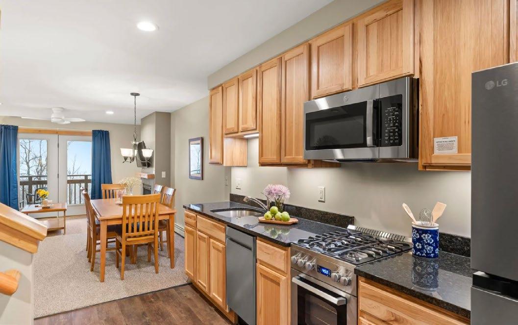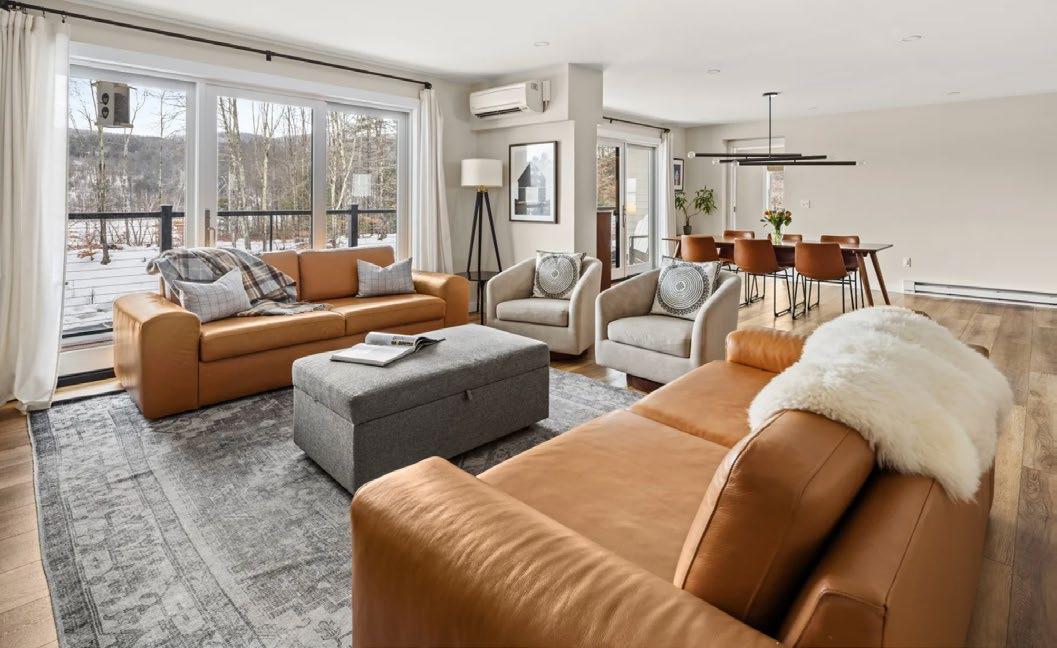 Looking for a beautifully updated, move-in-ready property just minutes from the ski resort and local amenities? This is the one! Fully renovated in 2023, this spacious 1,984 sq ft condo offers single-level living with all-new interiors from walls and windows to flooring, appliances, and mechanicals. The bright, open layout features large windows that flood the home with natural light. The kitchen is a chef's dream, complete with ample prep space, a long island, and a deep farmhouse sink, perfect for entertaining or casual meals. With only five homeowners in the development, privacy and tranquility are built in. There is even potential to add a private storage shed.